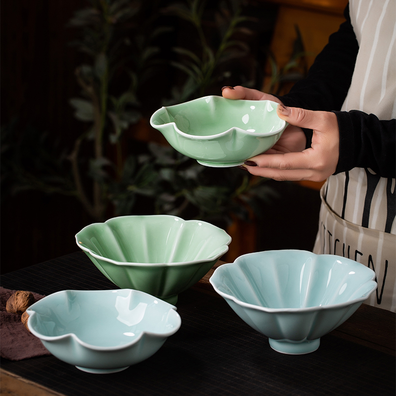 陶瓷斗笠花瓣碗影青精致感景德镇家用饭碗创意点心盘沙拉碗凉菜碗