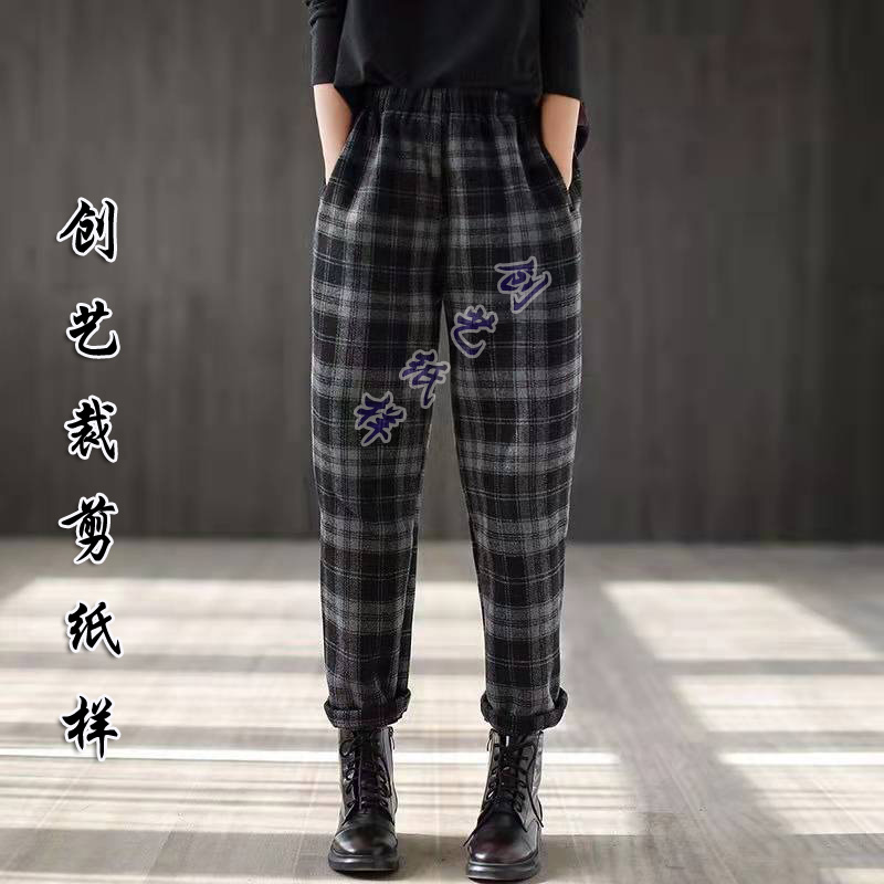 服装裁剪实物Q331加绒加厚长裤休闲外穿格子毛呢哈伦裤女纸样版纸