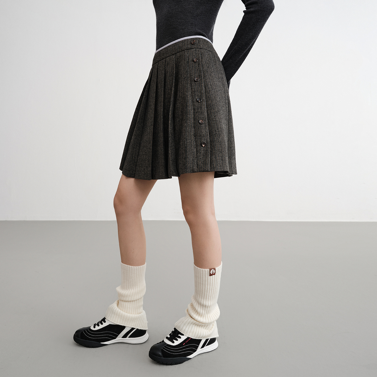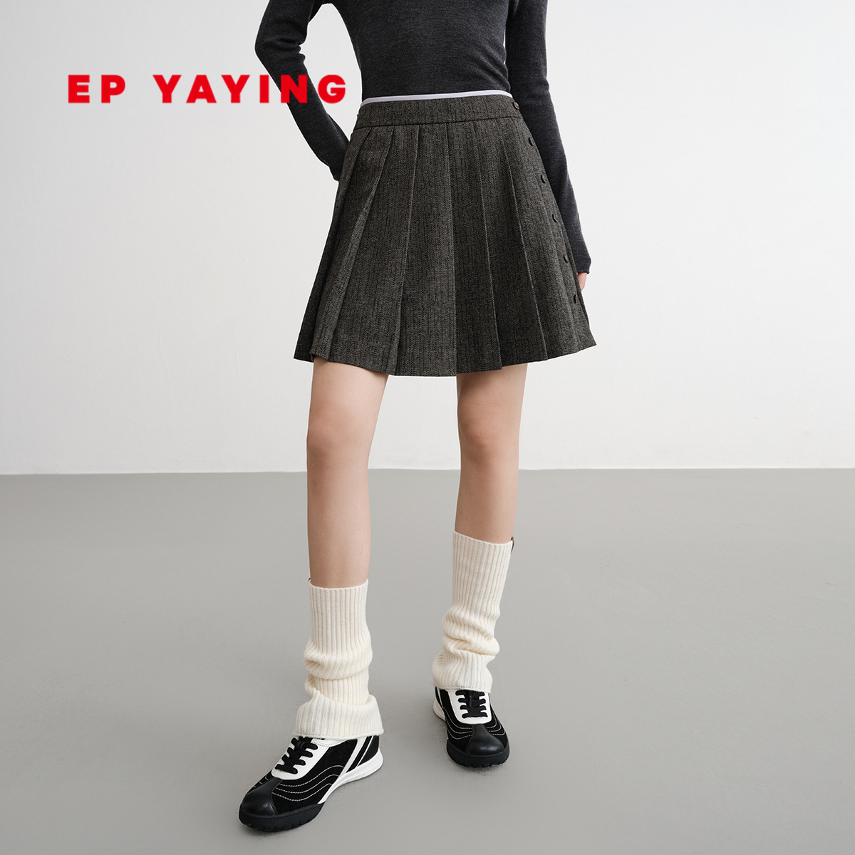 EP雅莹2025早秋新款 夹花针织学院风百褶裙高腰半身裙短裙3313A