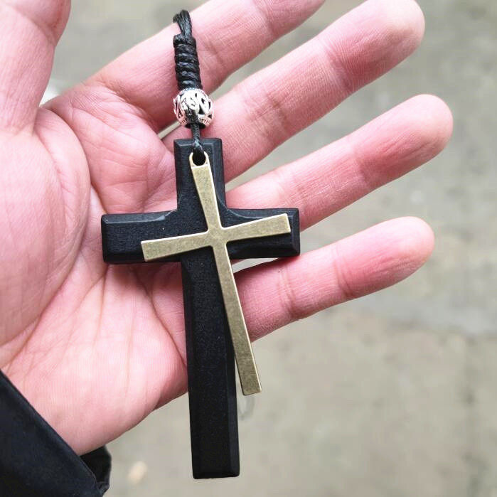 手工木质十字架项链复古平安男女士长款吊坠毛衣链情侣简约新中式