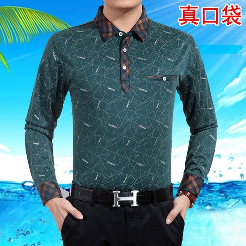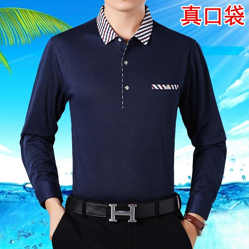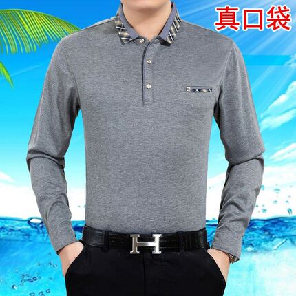 中老年长袖t恤男宽t松中领父亲中年秋衣打底衫春季纯色老头衫