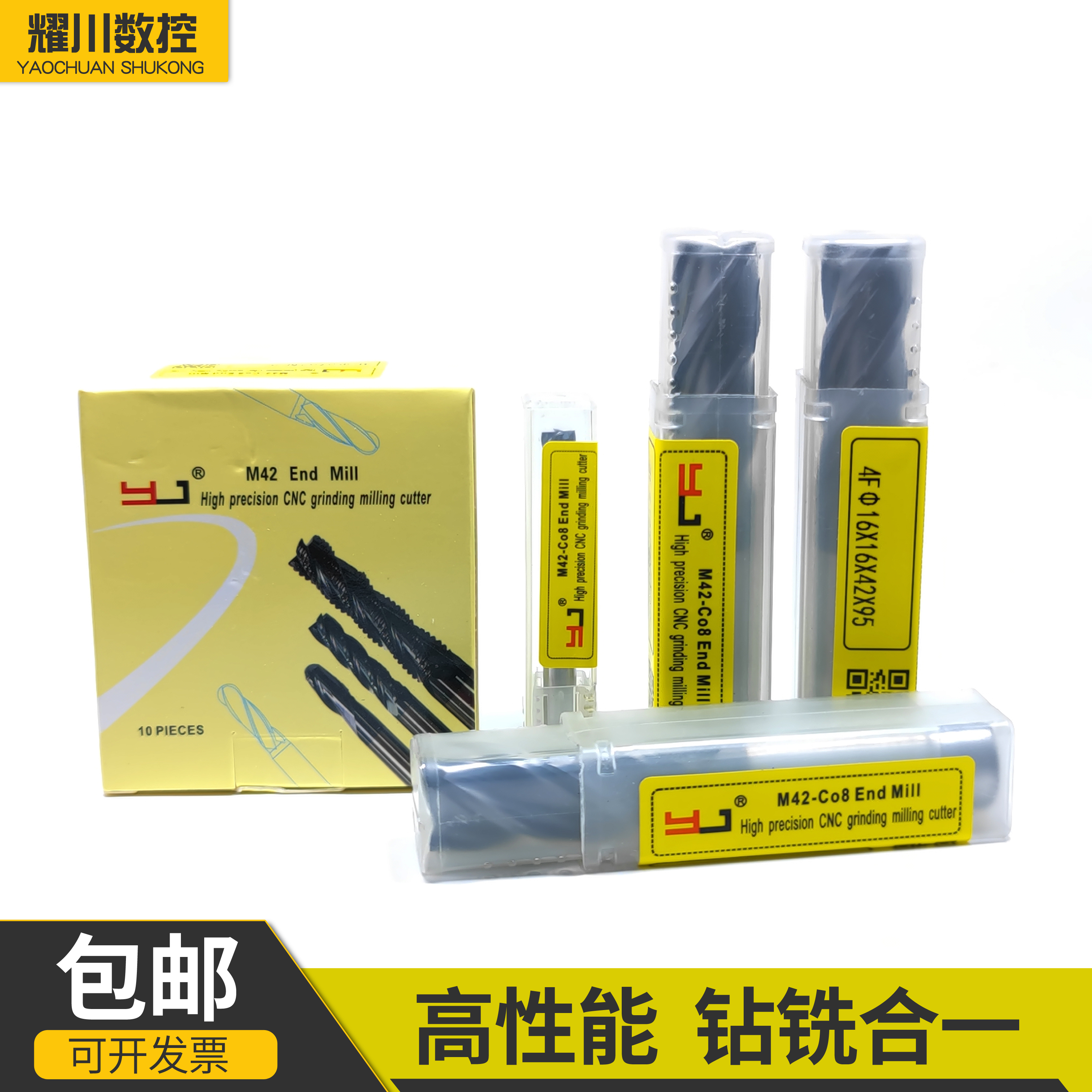 YJ含钴涂层铣刀高速钢M42Co8加长不锈钢专用平底4刃高性能立铣刀
