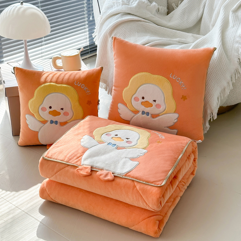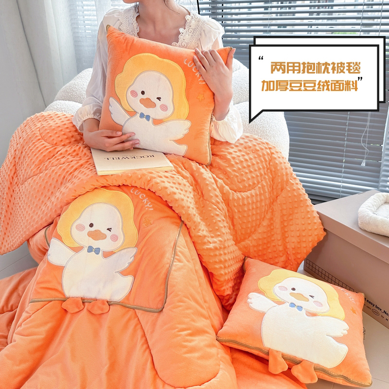 冬季卡通抱枕被加厚保暖两用毛毯二合一小鸭子汽车靠垫办公室午睡