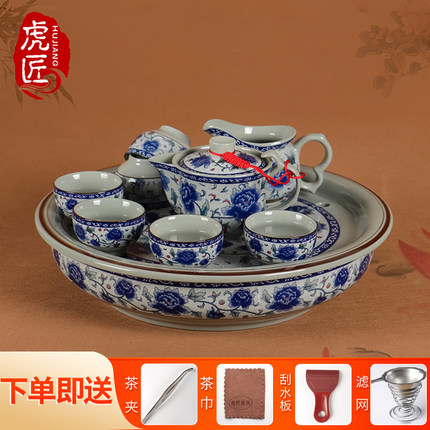 虎匠景德镇陶瓷茶具套装家用客厅潮汕功夫茶青花瓷茶盘茶壶瓷器