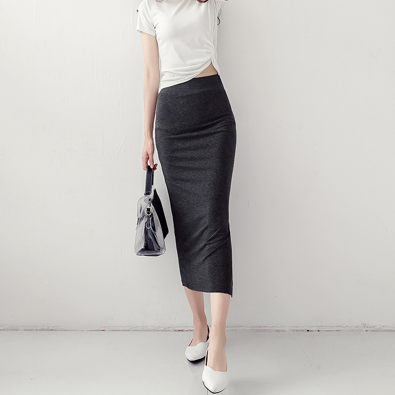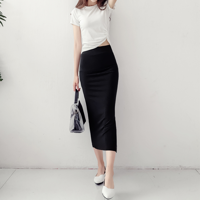 黑色一步裙半身裙女士2025春夏新款高腰开叉半裙百搭长裙包臀裙子