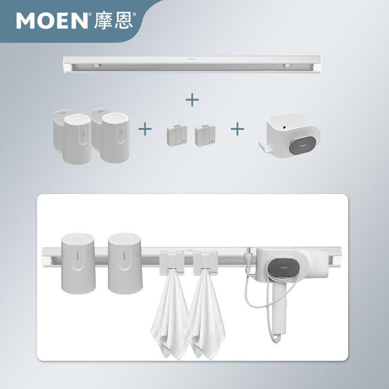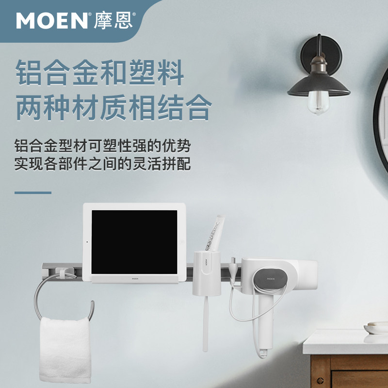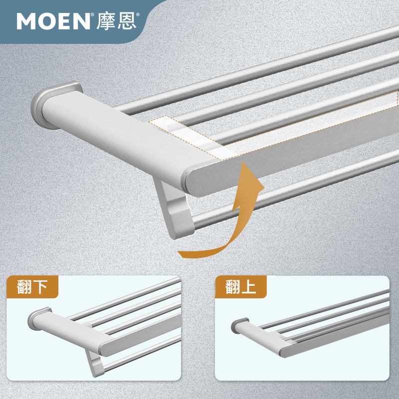 摩恩卫生间浴巾架浴室毛巾架置物架卫浴五金挂件壁挂毛巾杆银白色