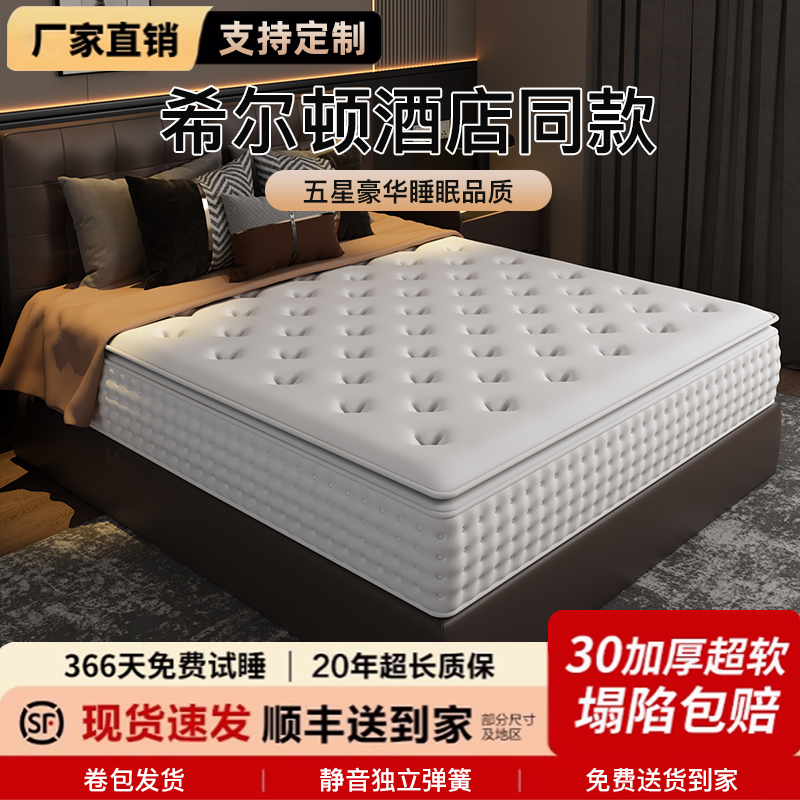 喜临门五星级酒乳胶记忆棉高档床垫超软独立弹簧30cm厚压缩软垫