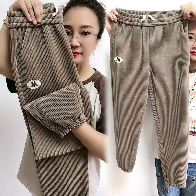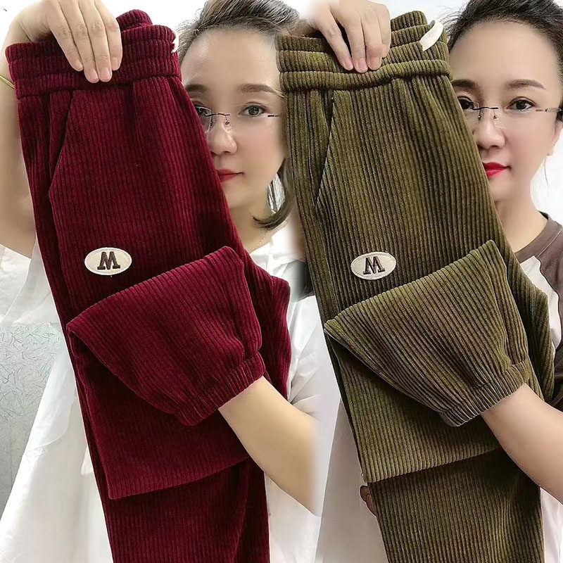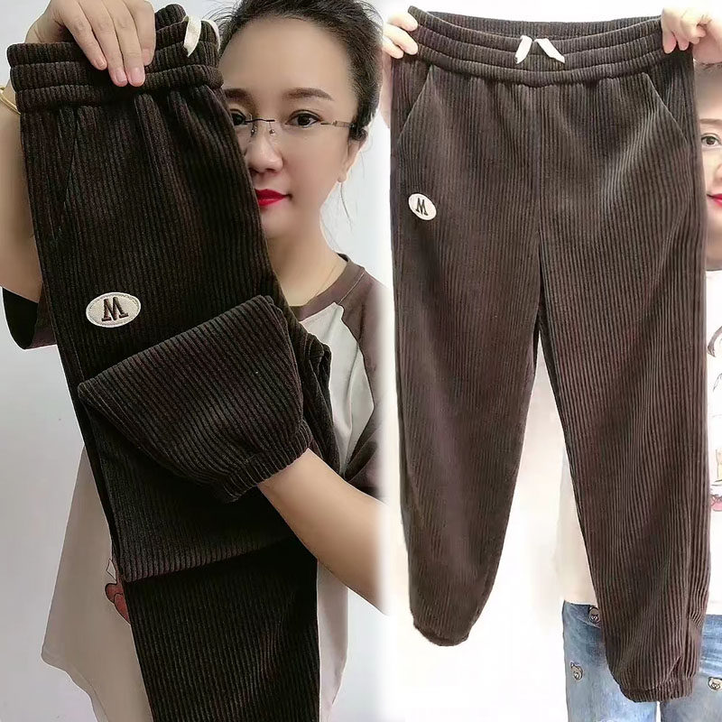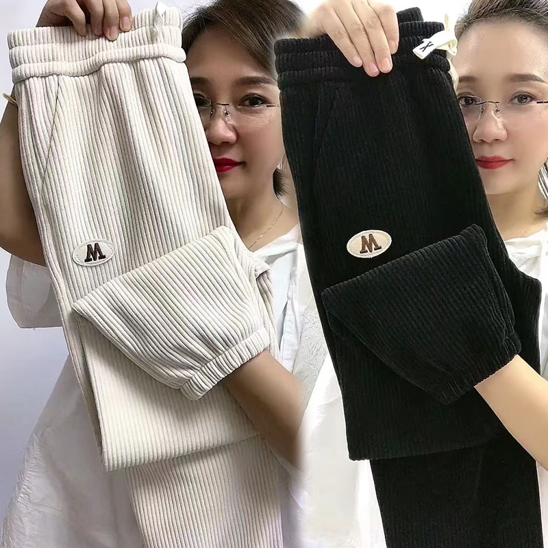 秋冬新款雪尼尔加厚休闲裤女韩版直筒宽松显瘦卫裤束脚百搭哈伦裤