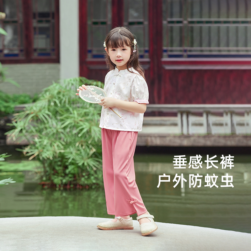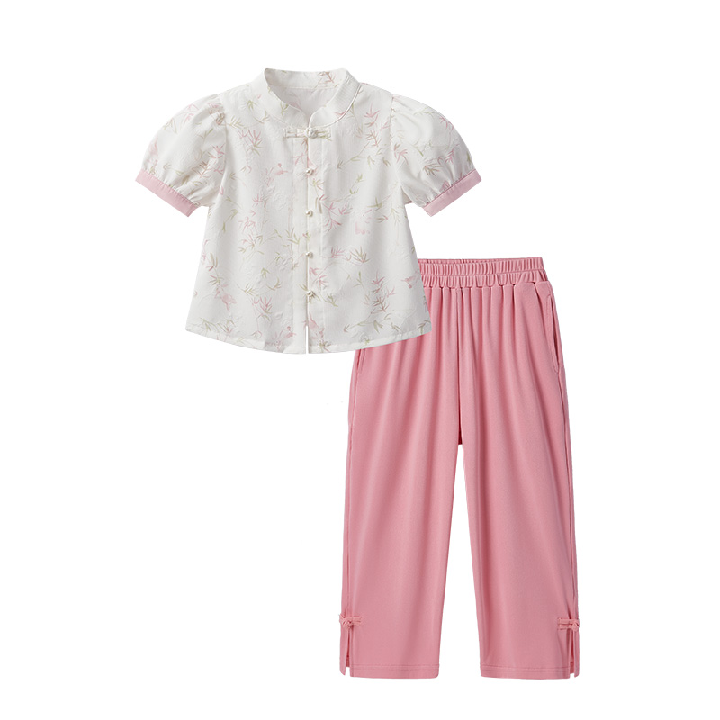 女童国风套装夏儿童新中式衣服夏季大童短袖两件套六岁小女孩夏装