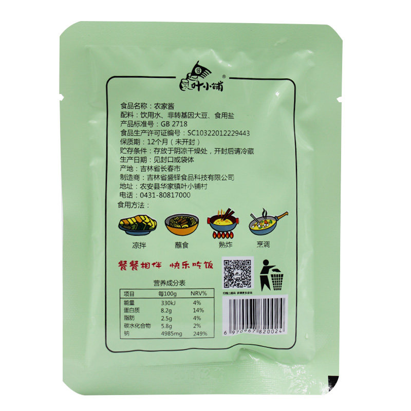 叶小铺无添加吉林特产90克黄豆酱