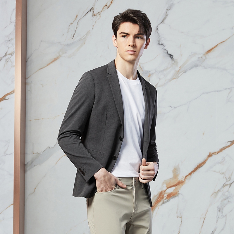 【高端系列】柒牌休闲西服男含莱赛尔泡泡纱肌理印花男士西装外套