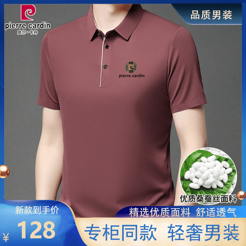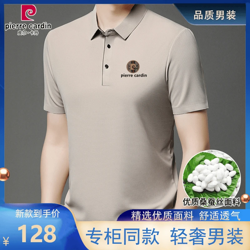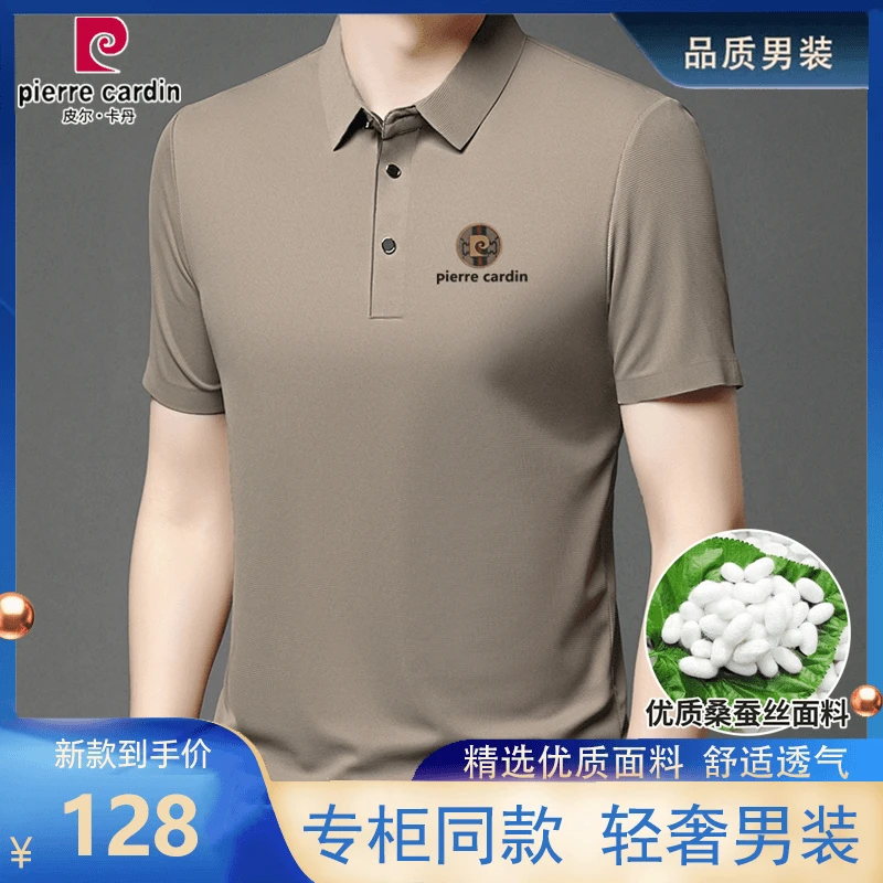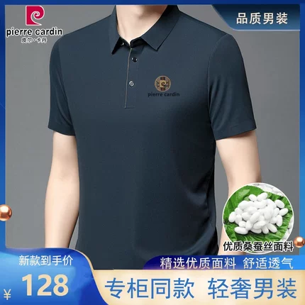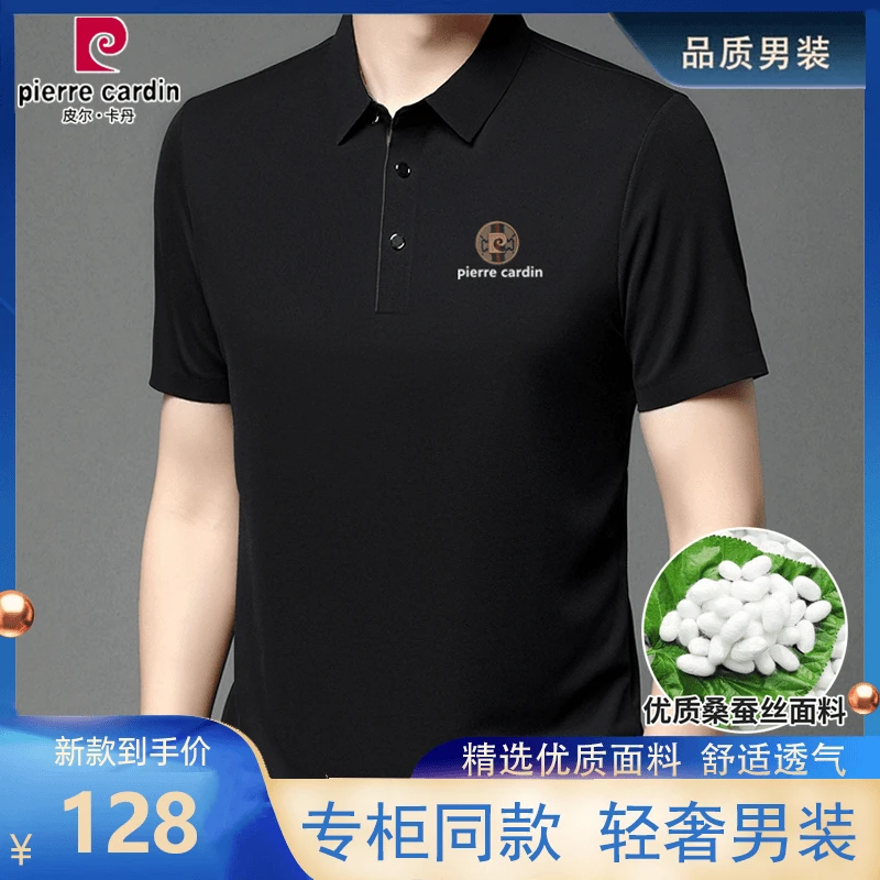 皮尔卡丹桑蚕丝短袖t恤男polo衫