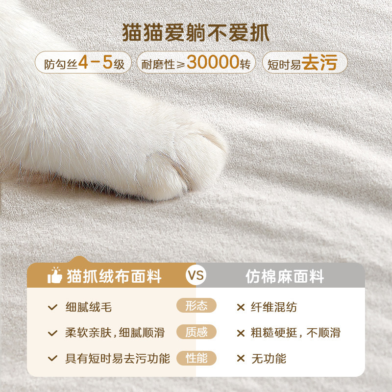 全友家居猫爪绒布奶油风布艺床