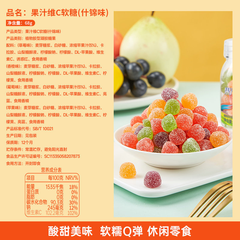 维C果汁软糖q糖彩虹橡皮糖儿童万圣节糖果喜糖零食小吃休闲食品批