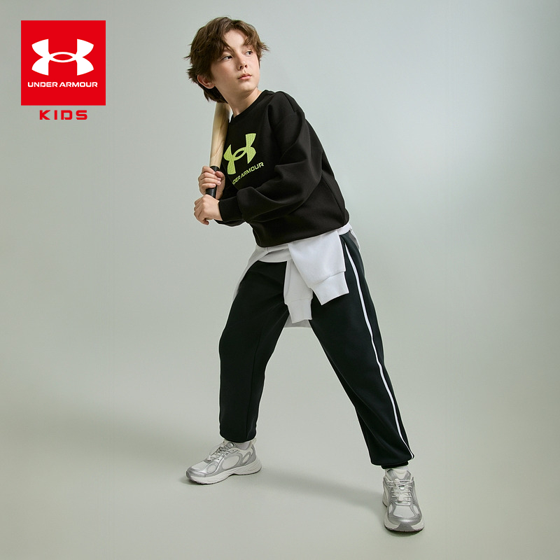安德玛童装秋季纯色简约儿童套头卫衣舒适休闲男女童长袖运动上衣