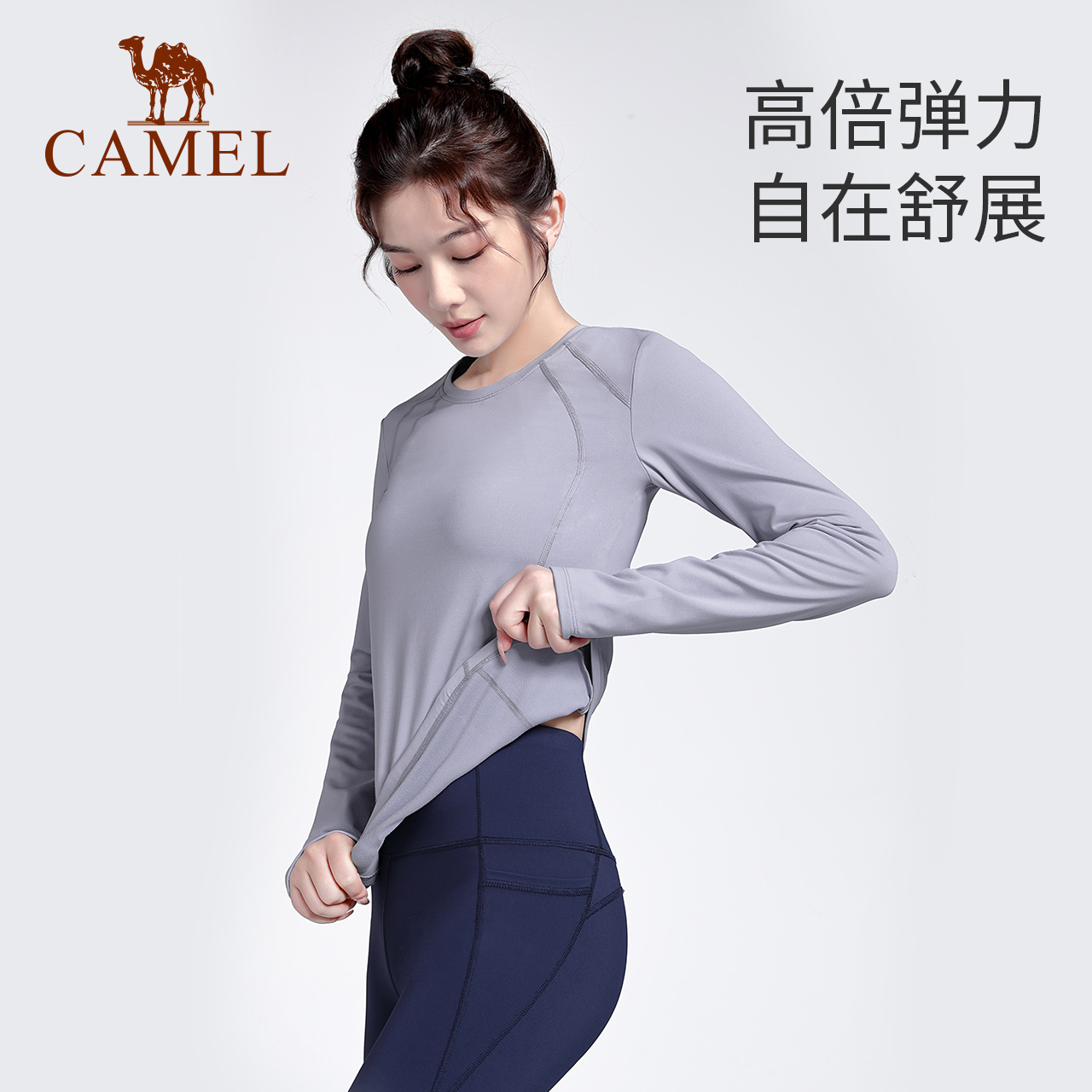 骆驼瑜伽T恤女款秋冬休闲保暖运动上衣圆领舒适修身款加绒长袖衫
