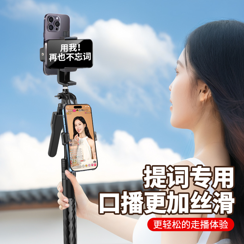提词器手机双机位支架手持桌面两用自拍杆便携小型短视频录课主播直播VLOG专用口播题词器