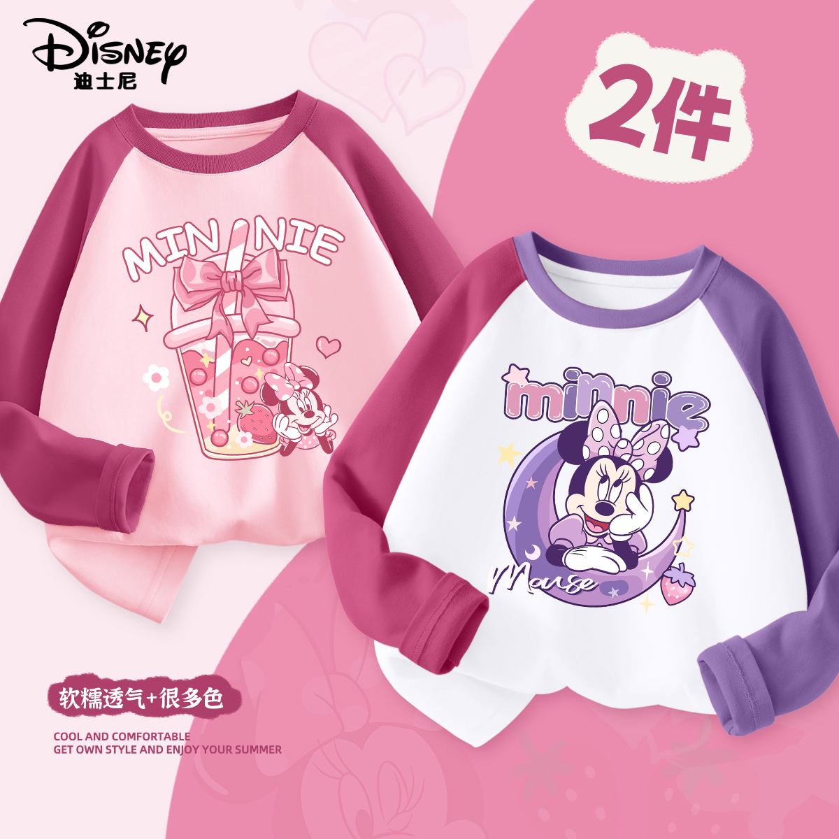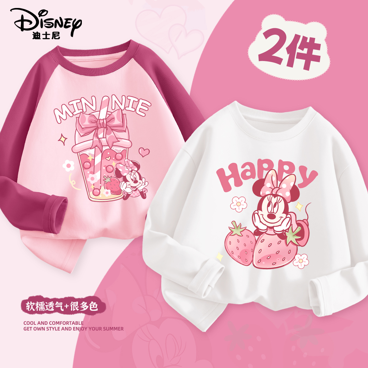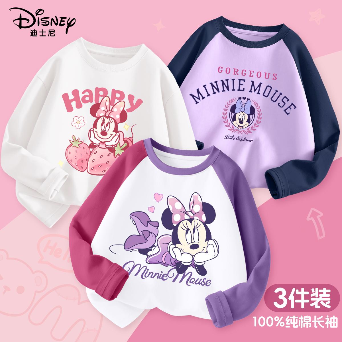 迪士尼女童长袖纯棉T恤