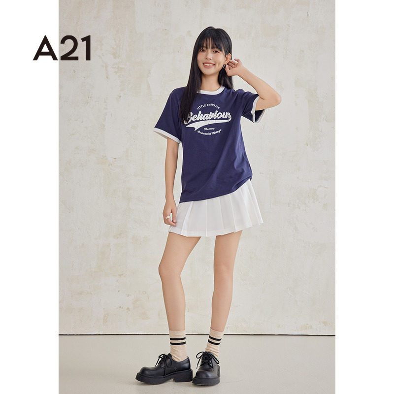 A21女装设计感印花针织T恤