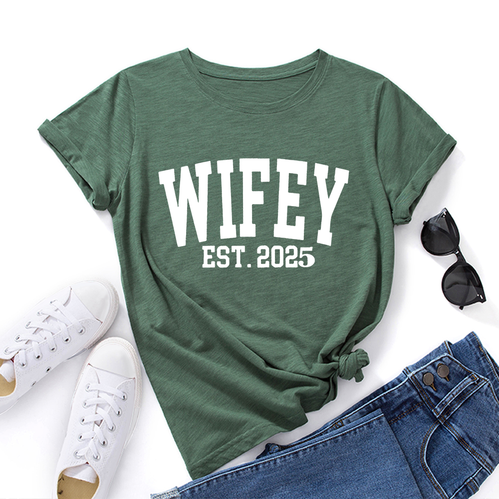 欧美女装Women T-shirt纯棉宽松薄款短袖圆领t恤女WIFEY字母印花