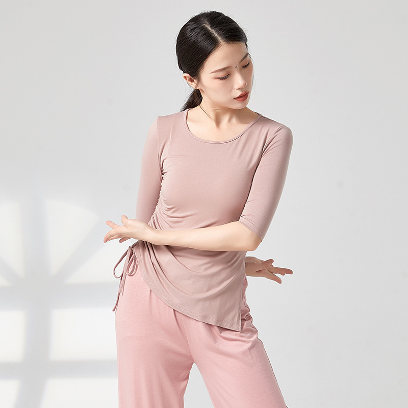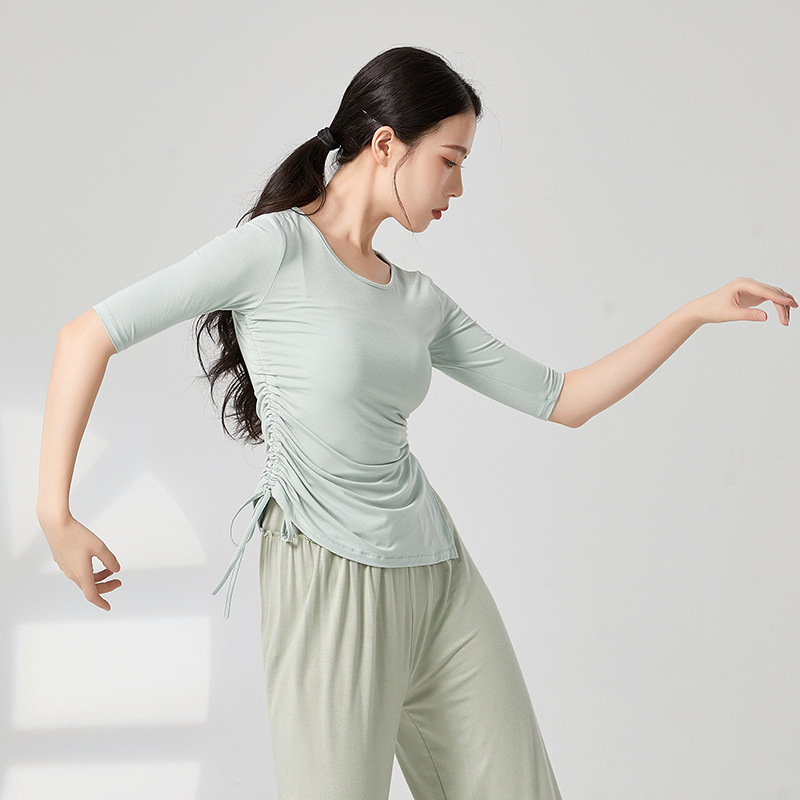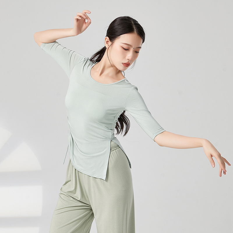 共妍古典现代舞蹈专业形体训练功服装抽绳中袖修身开叉显瘦上衣女