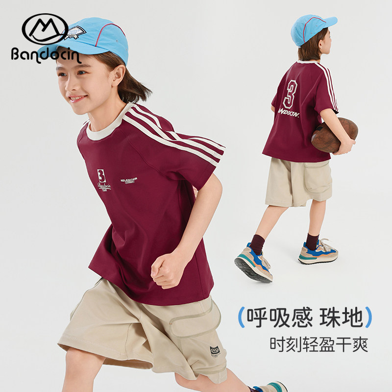 半度闲男童短袖篮球服夏装2025新款中大童运动速干衣男孩半袖t恤
