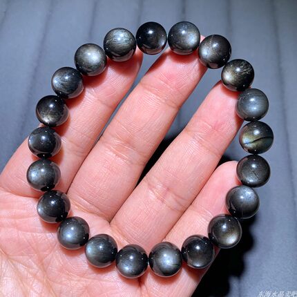 天然黑爆闪海蓝宝手链冰透星光深蓝水晶宝石情侣手串送礼物饰品女