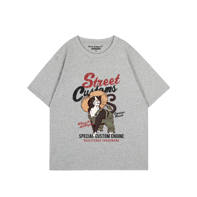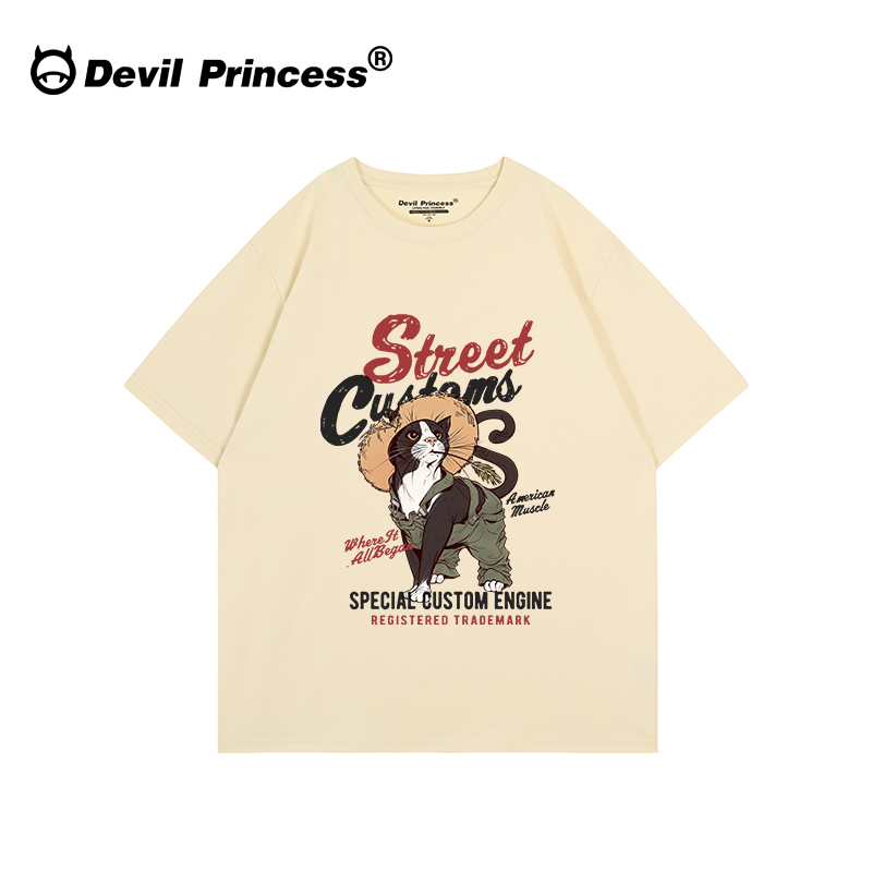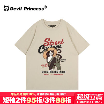 vintage古着感浅卡其短袖t恤女美式校园风大版宽松卡通潮牌上衣夏
