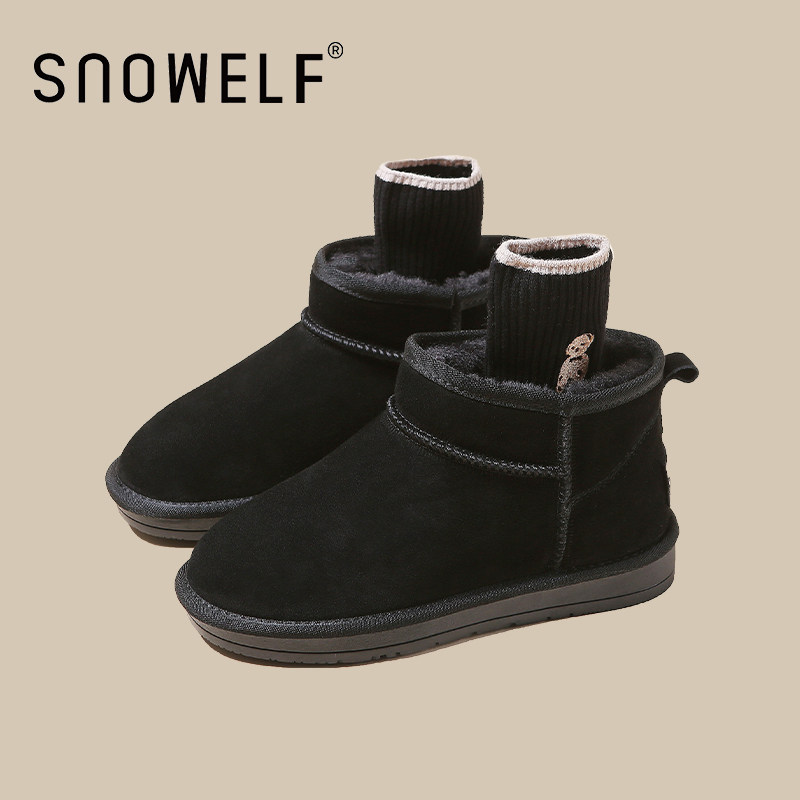 真皮雪地靴女2025年新款冬保暖加绒防滑东北棉鞋女士内增高保暖鞋