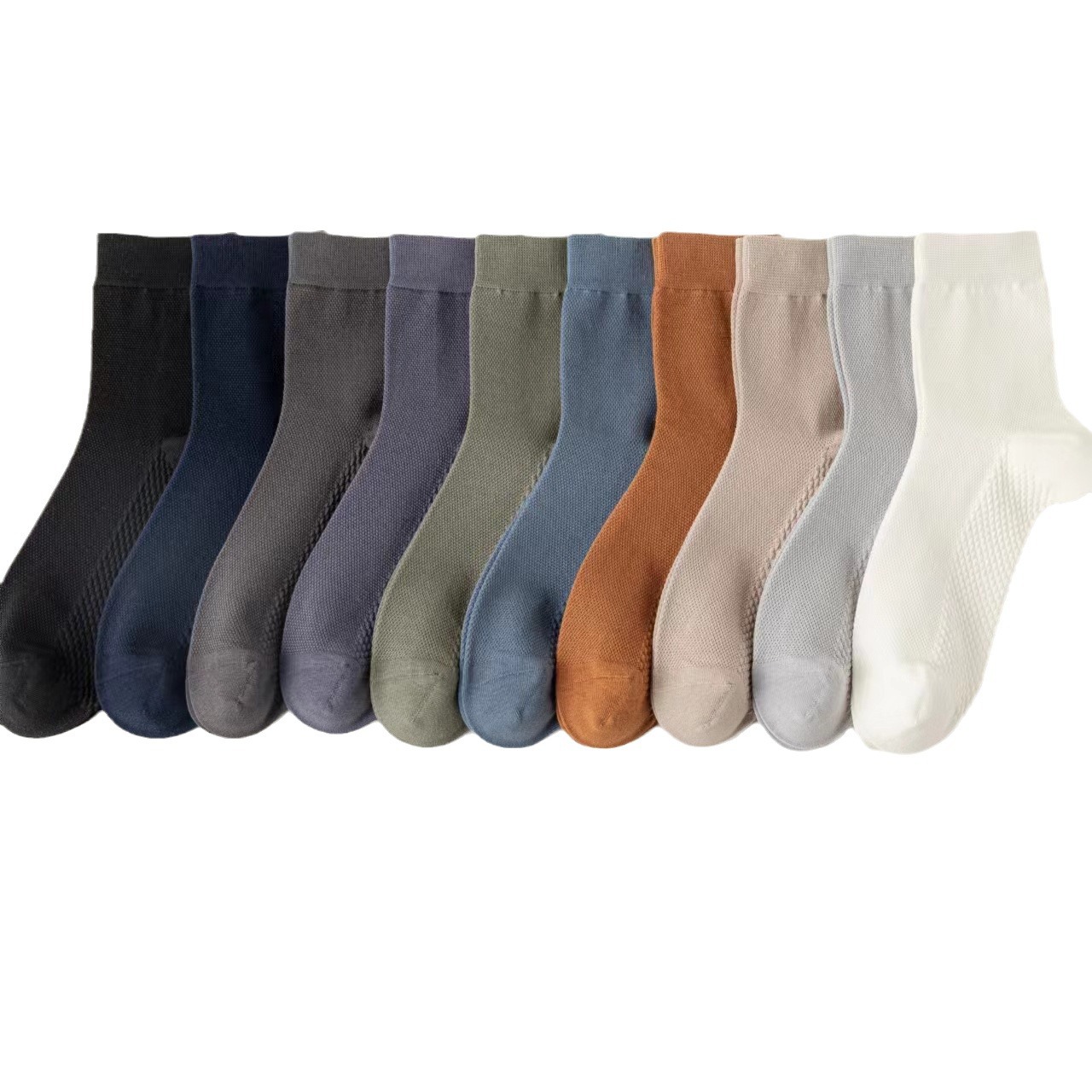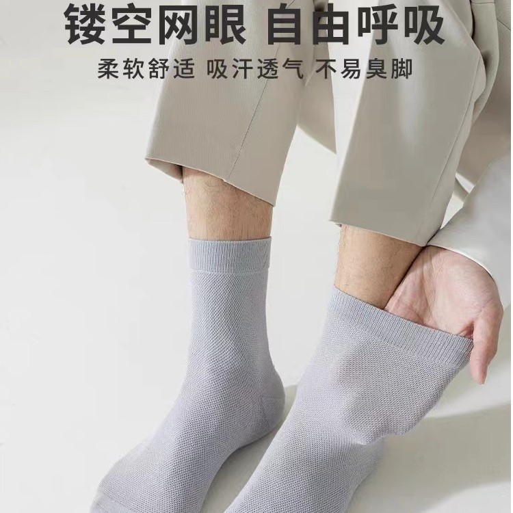 纯棉无骨袜夏季网眼薄款透气中筒棉袜吸汗按摩底运动休闲男士长袜
