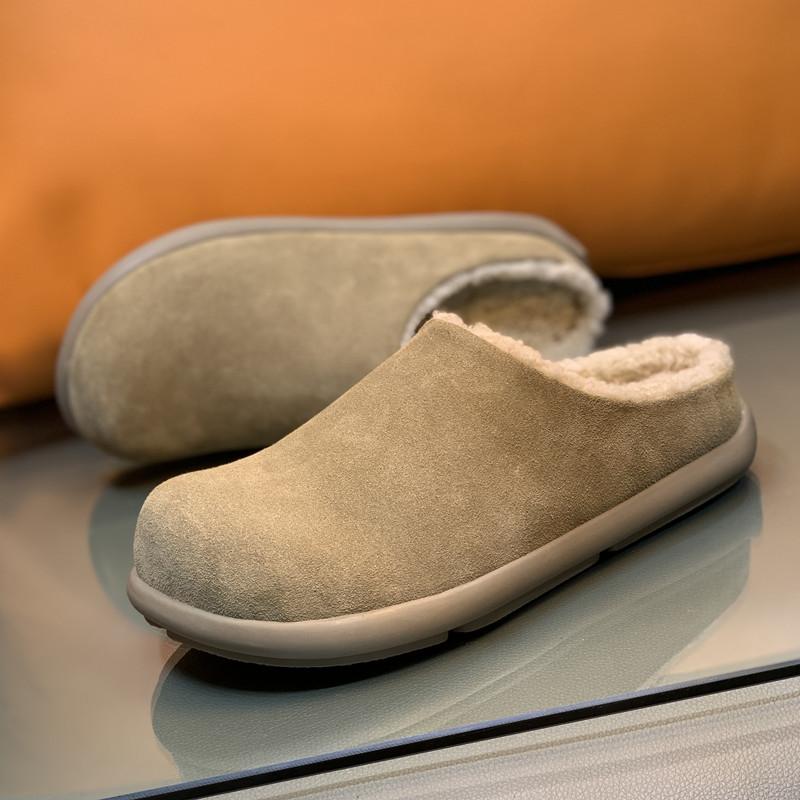 欧洲站男鞋真皮羊皮毛一体半拖鞋男冬季保暖雪地靴居家拖鞋勃肯鞋