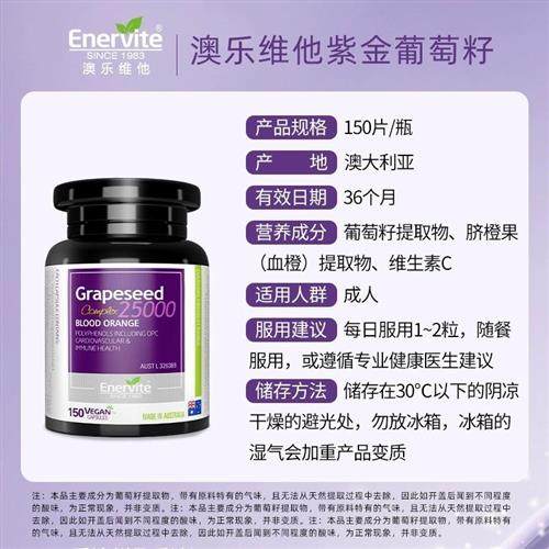 澳乐维他紫金葡萄籽胶囊原花青素150粒口服烟酰胺opc抗自由基2瓶