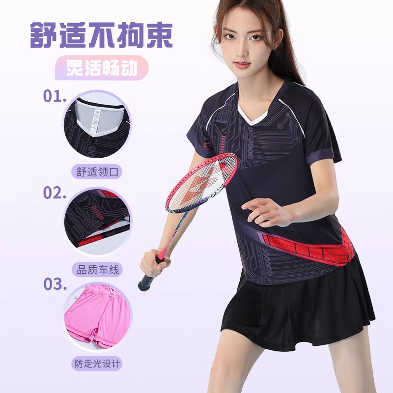 秋冬新款羽毛球服女运动服短裙套装速干上衣短袖乒乓球网球服定制
