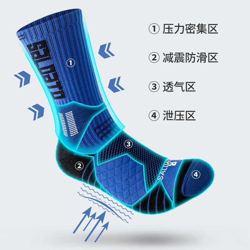 跑步袜子男长筒纯棉长筒冬季专业运动马拉松加厚毛巾底足球黑色