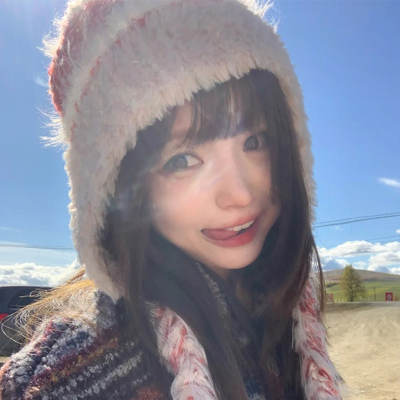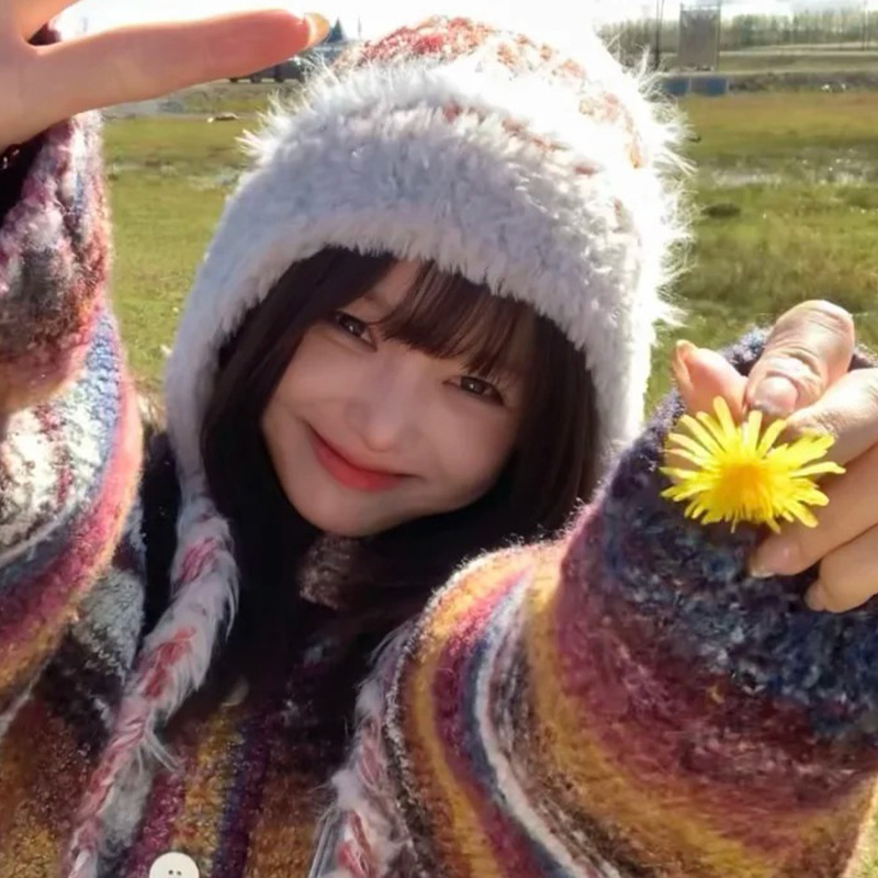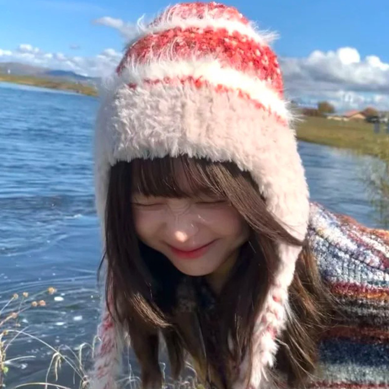 撞色毛绒针织护耳帽女秋冬川西旅游毛线帽显脸小保暖防寒包头帽子