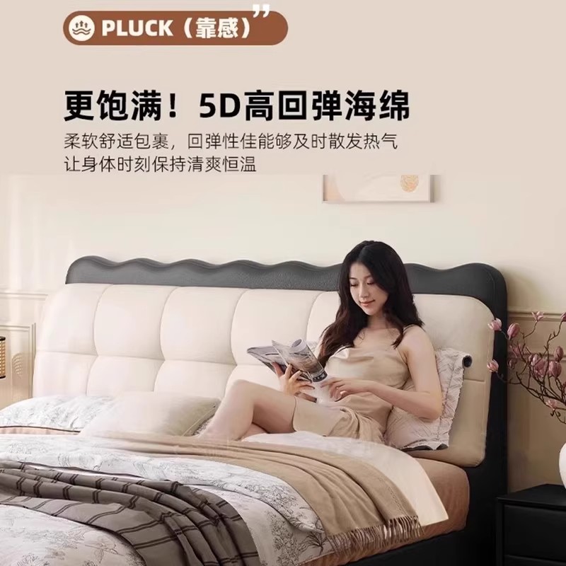 法式复古真皮床现代简约主卧室高端大气1米8双人床储物婚床软包床