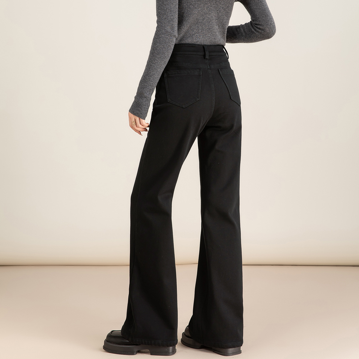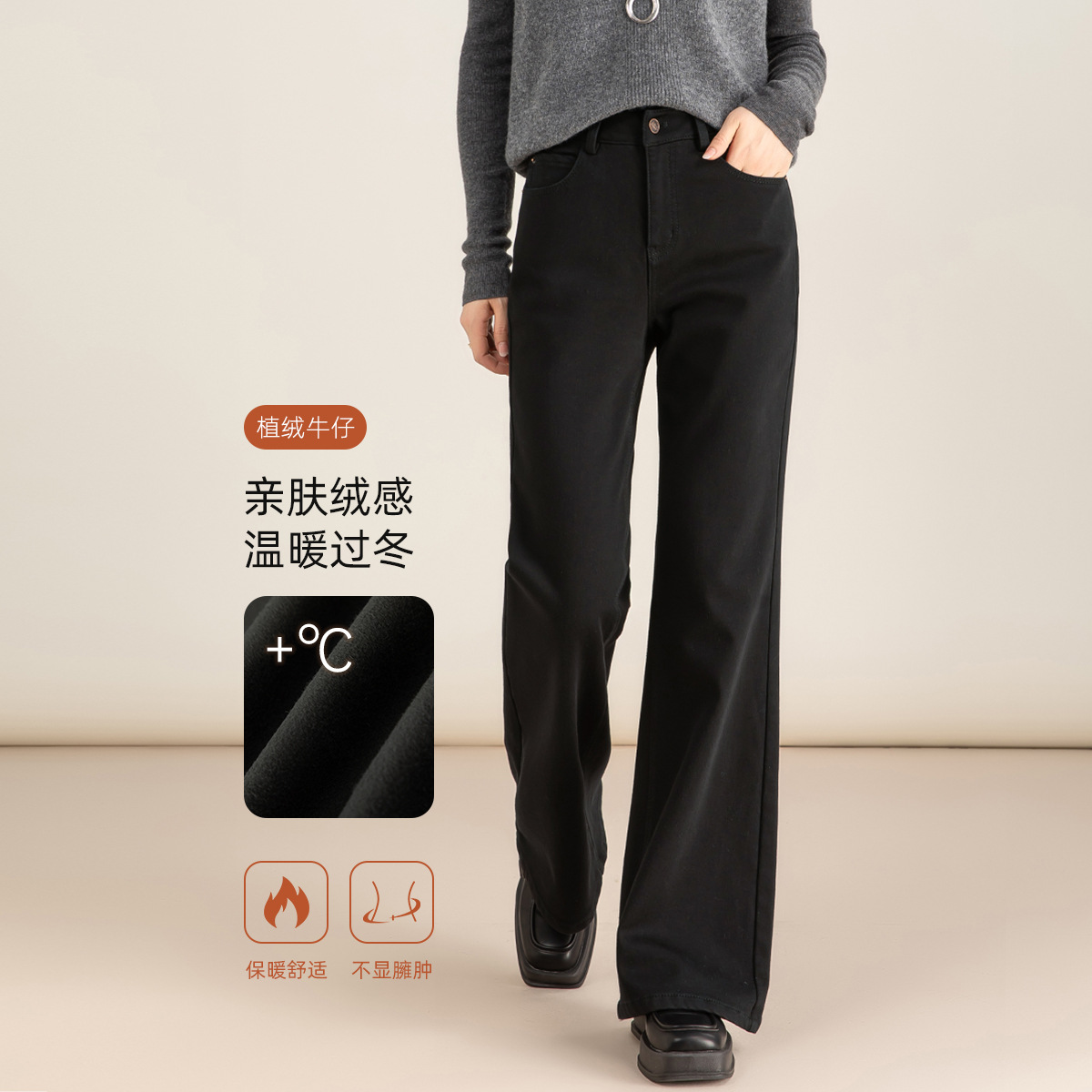 5馆黑色加绒牛仔微喇裤女2025新款冬季高腰垂感弹力天丝喇叭