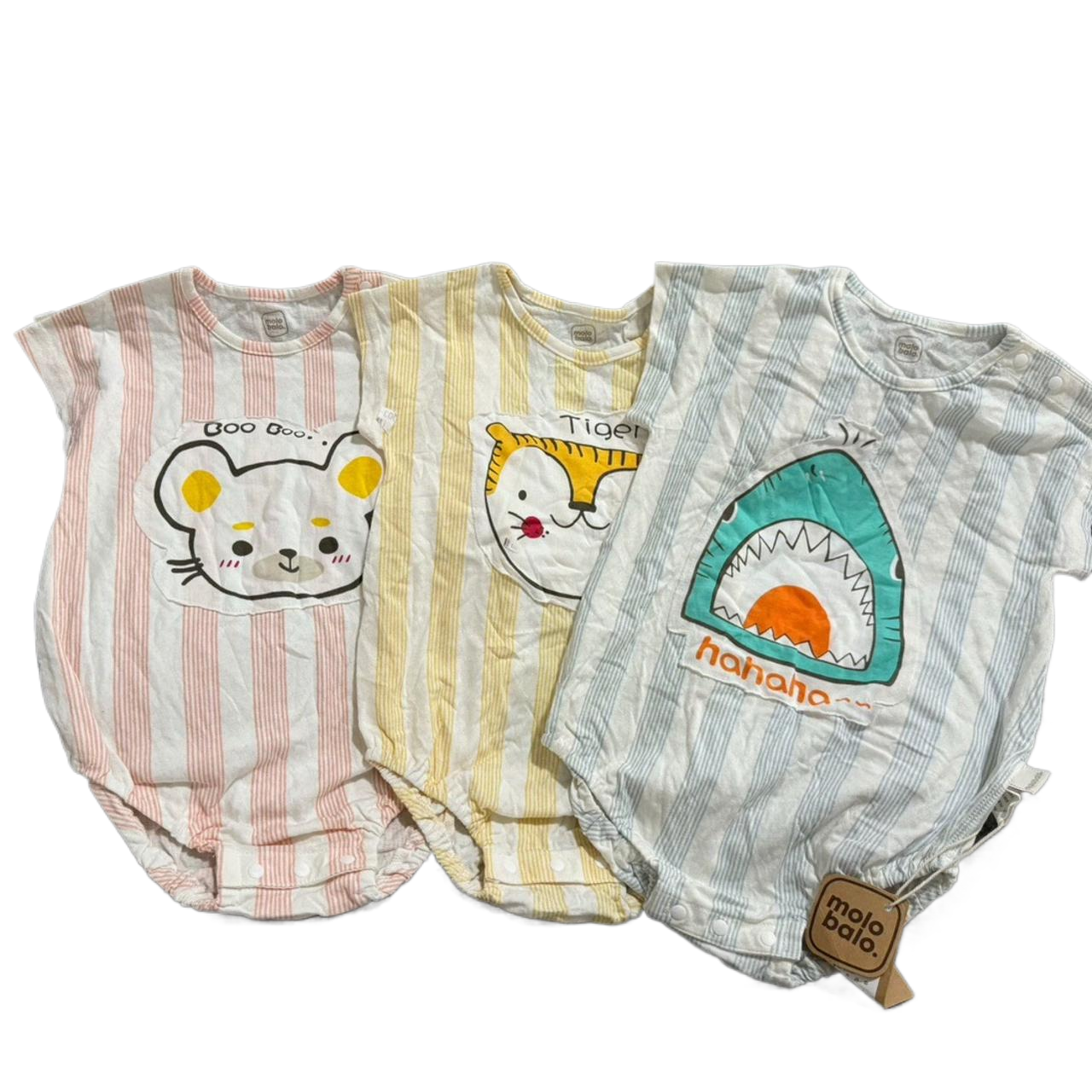外贸原单夏季宝宝贴布纯棉透气网孔短袖三角爬服哈衣包屁衣