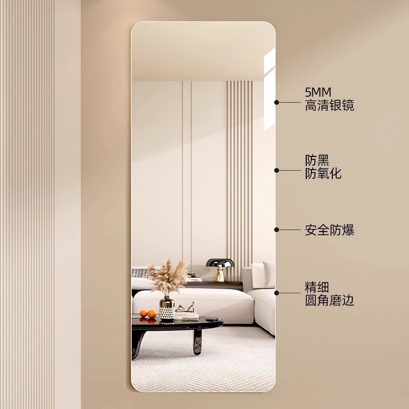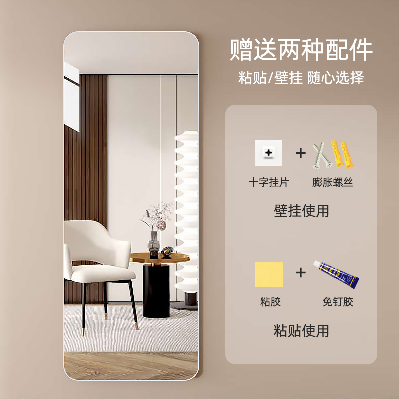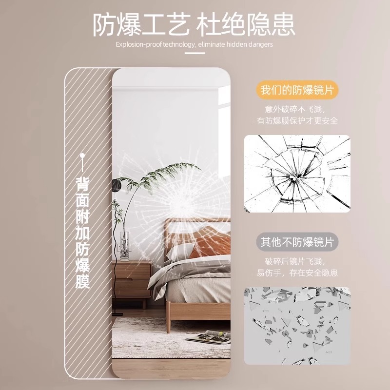 无框全身镜轻奢自粘穿衣镜免打孔壁挂卧室家用防爆试衣镜贴墙镜子