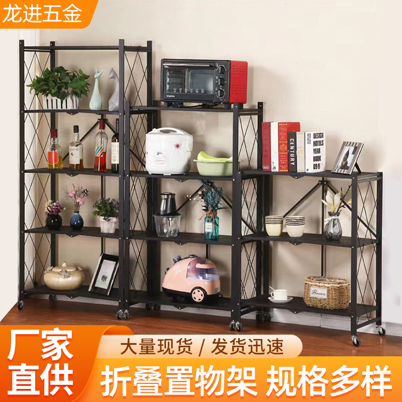 厨房置物架免安装落地多层阳台储物架子移动微波炉折叠收纳架