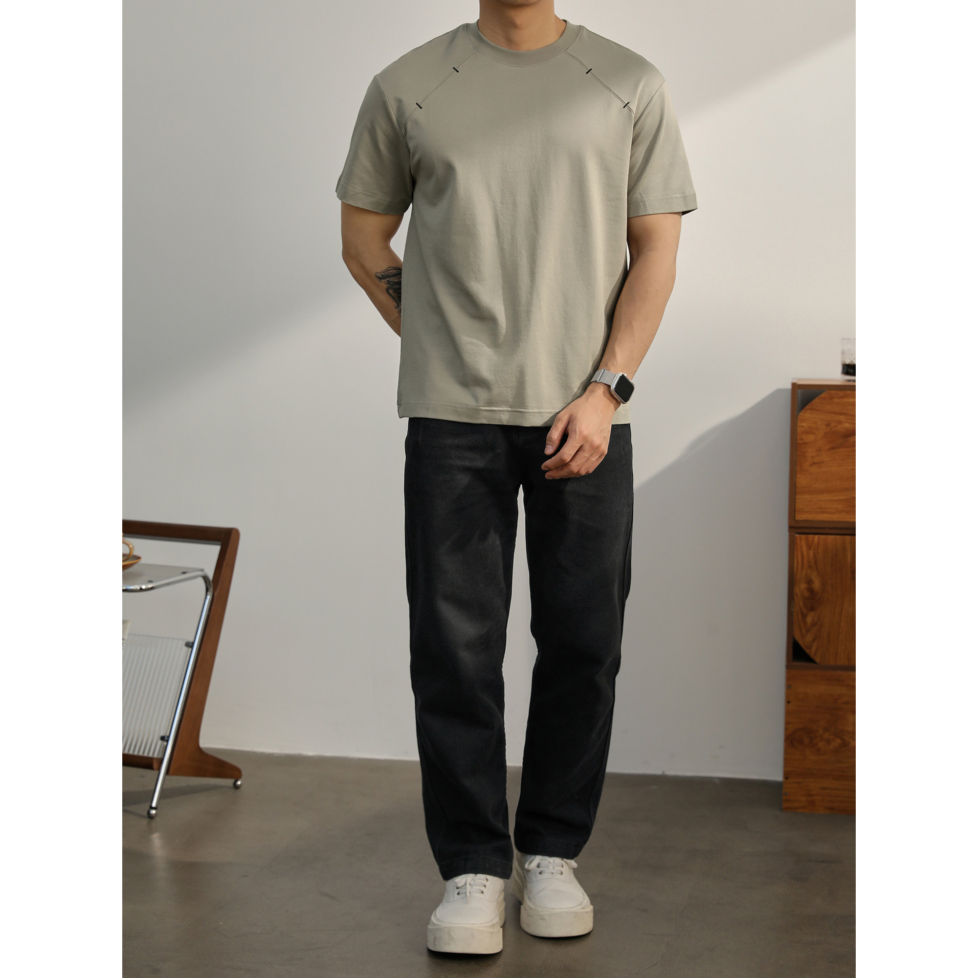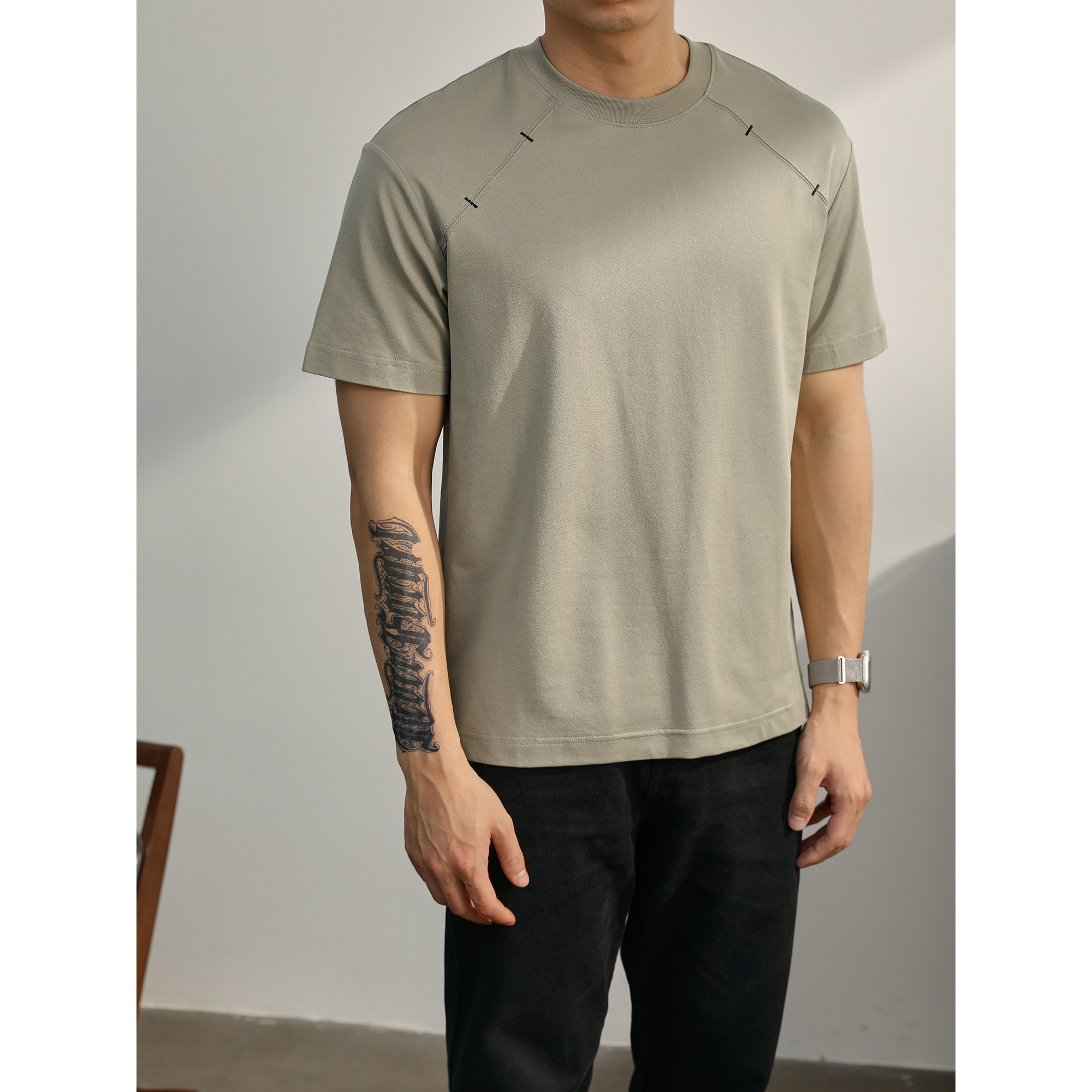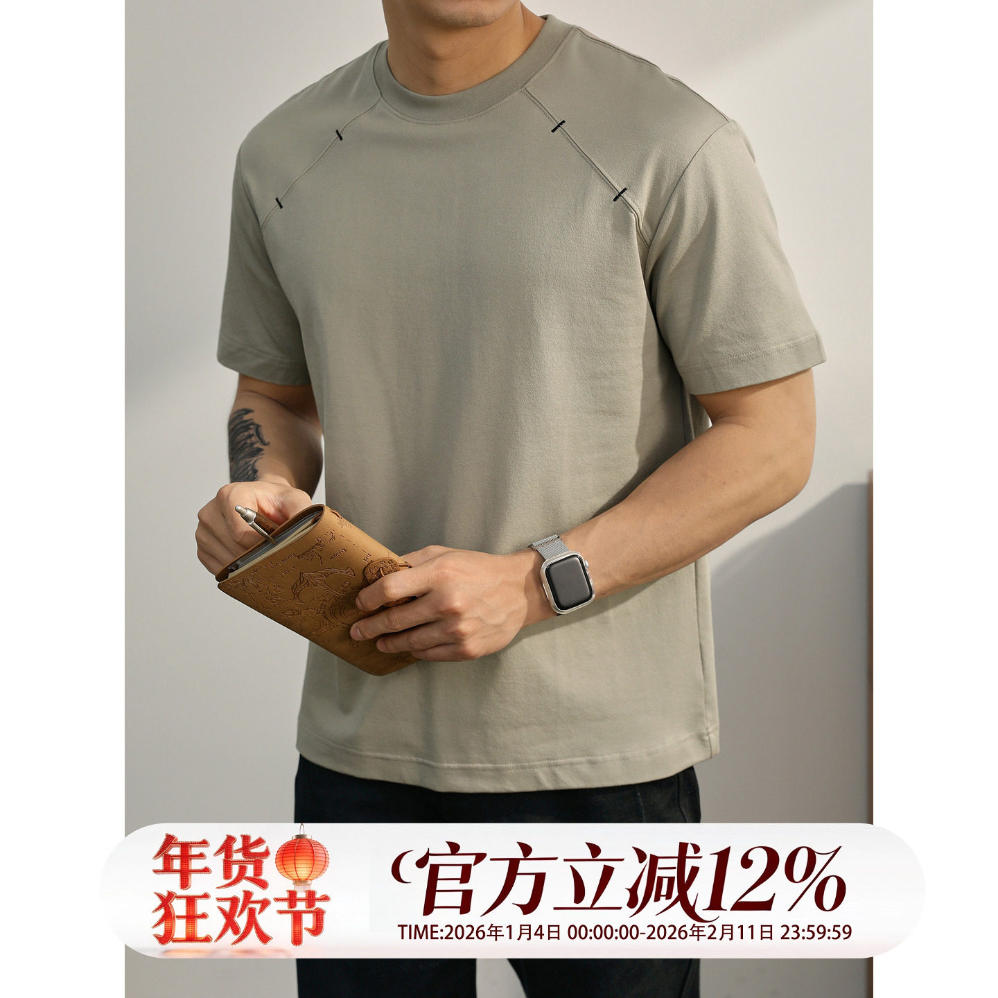 LUUD 都市休闲短袖T恤男夏季拼接分割设计感重磅上衣痞帅圆领体恤