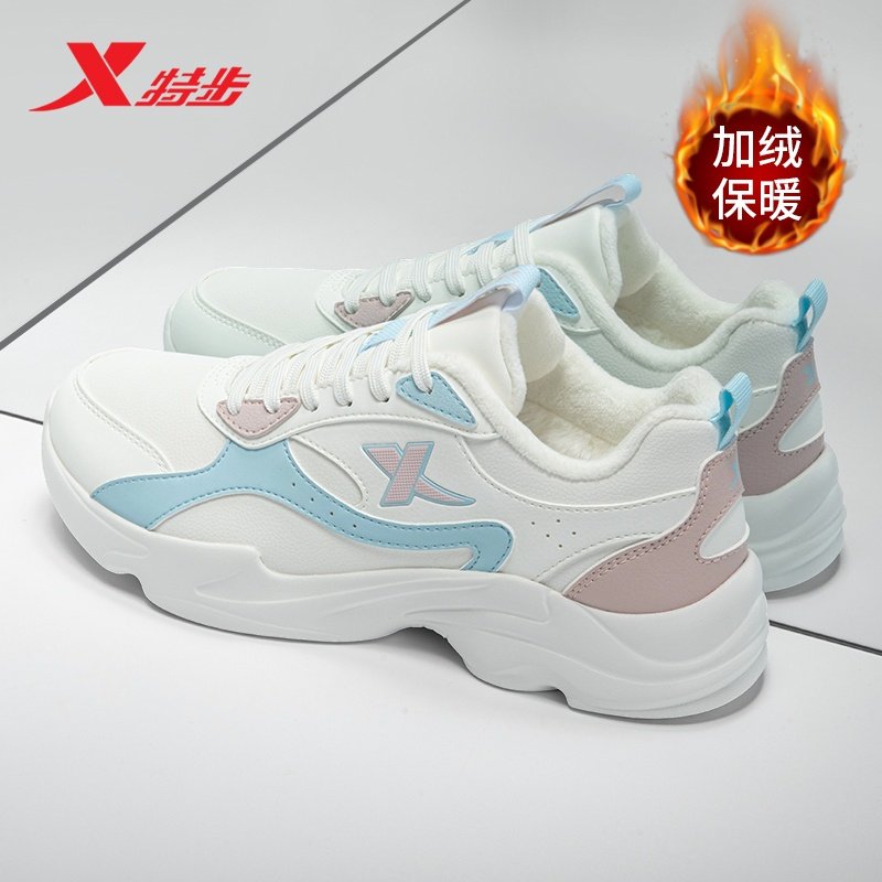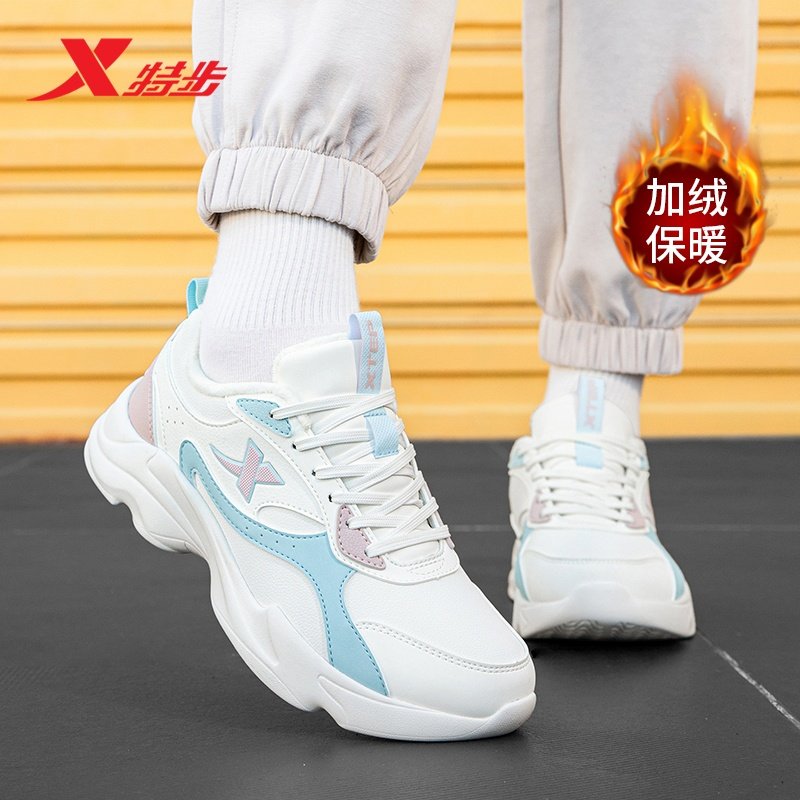 特步女鞋冬季加绒保暖子女子老爹鞋跑步鞋休闲鞋软底加厚运动鞋女