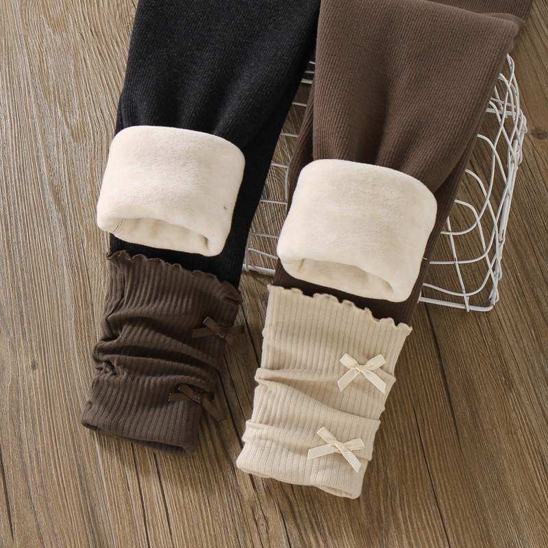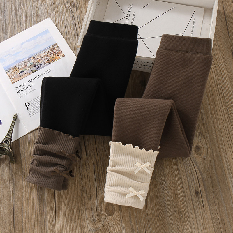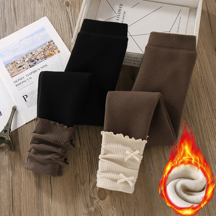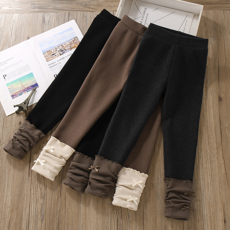 小女孩裤子加绒秋冬季时尚儿童一体绒加厚女童洋气黑色打底裤外穿