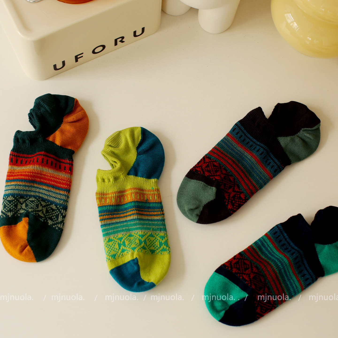 米吉诺拉 无骨四季双针粗线潮袜子ins运动低帮浅口男女纯棉船袜