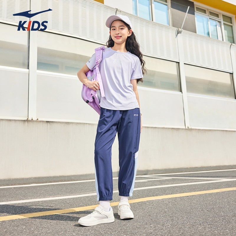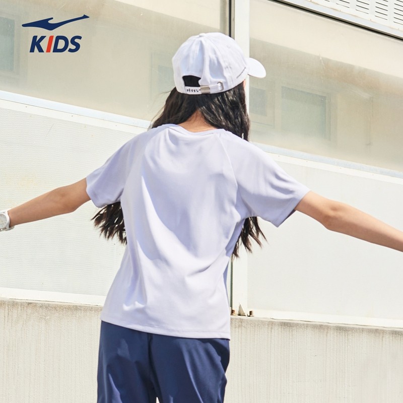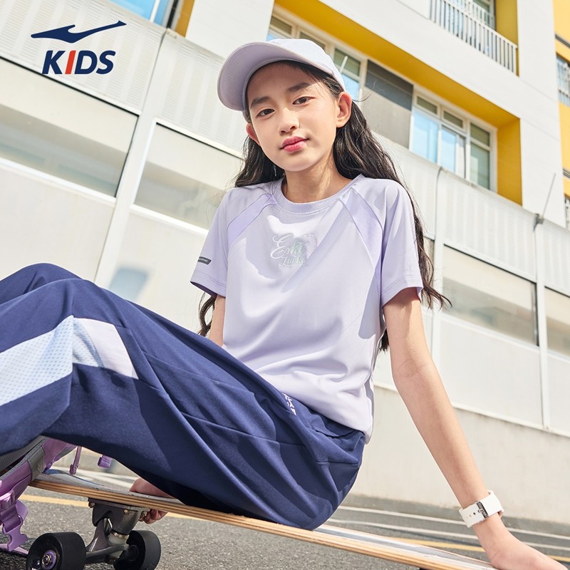 鸿星尔克童装女童短袖冬季儿童速干衣T恤运动百搭中大童宽松半袖