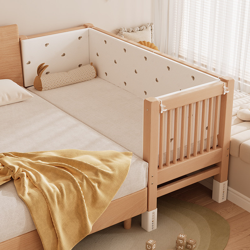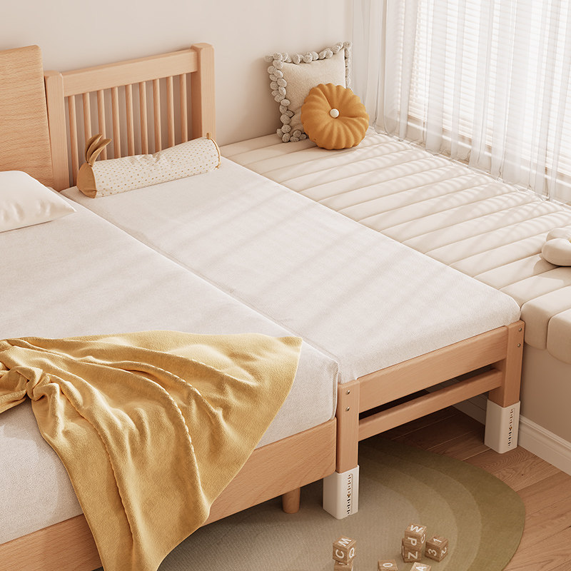 榉木儿童拼接床加宽床大人单人床