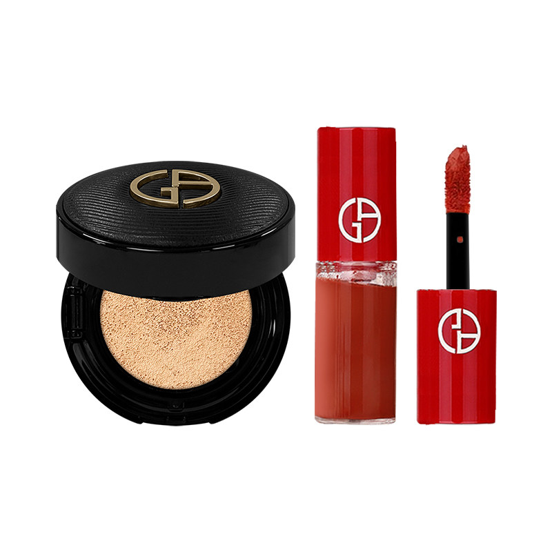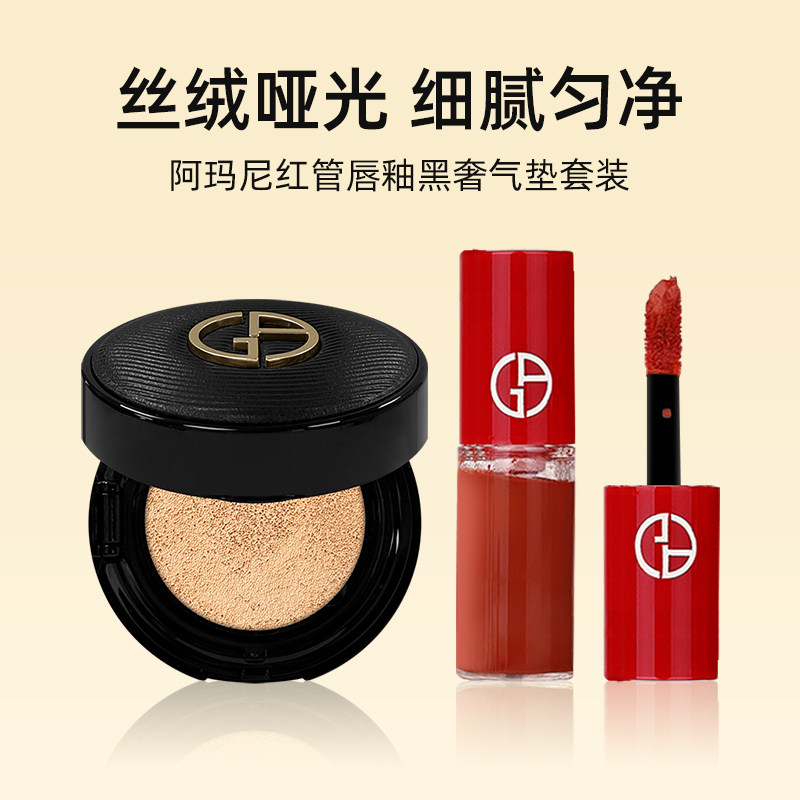 【自营】阿玛尼红管唇釉3ml+黑奢气垫5g小样套装口红粉底液保湿
