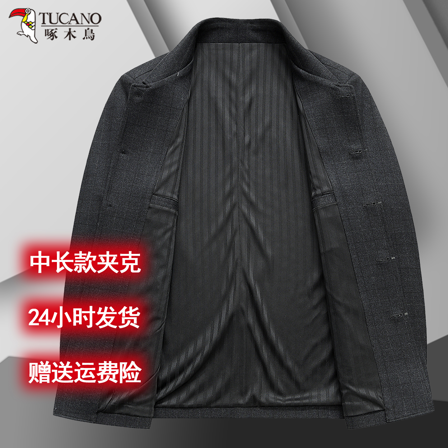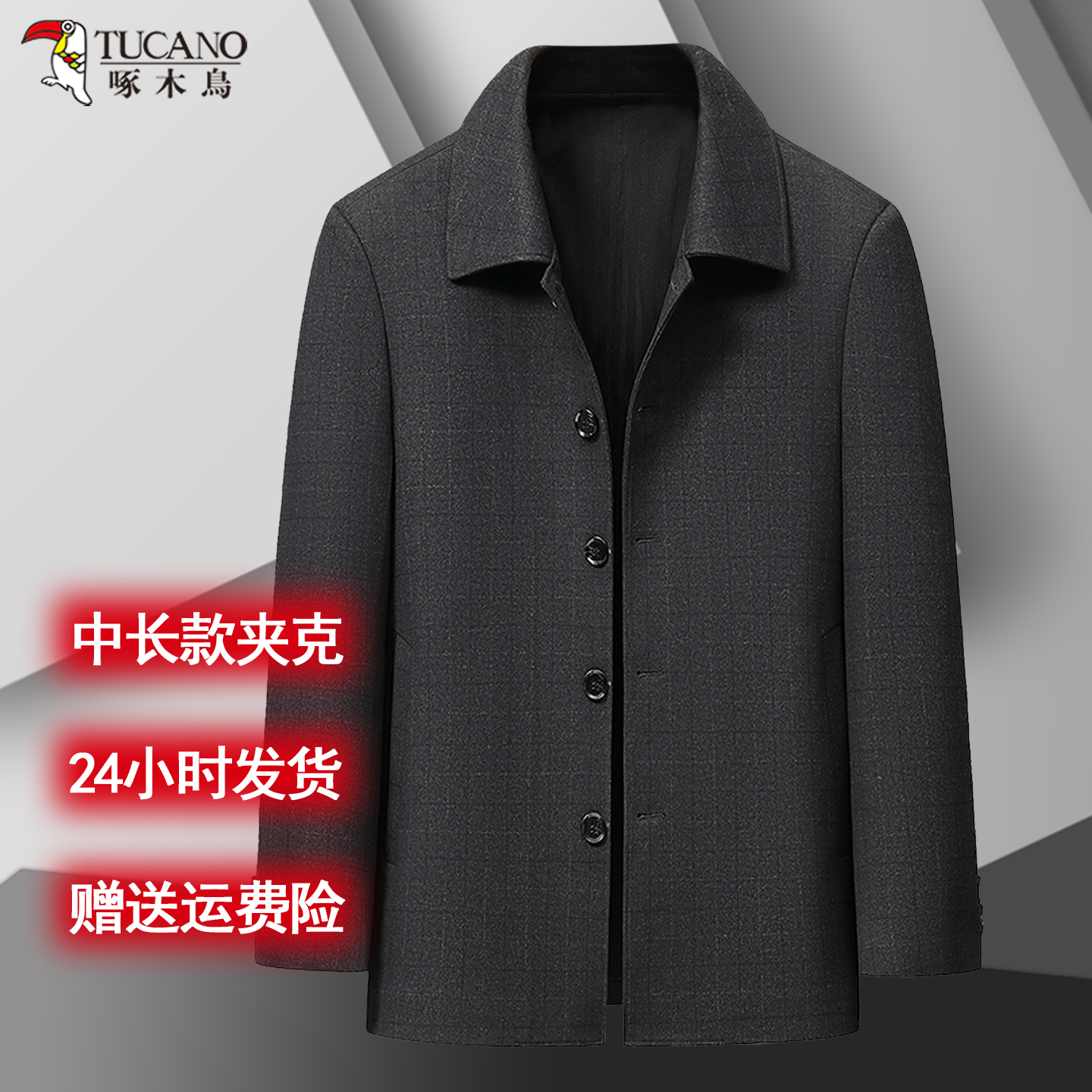啄木鸟2025秋冬季新款翻领休闲夹克爸爸外套男士通勤商务行政茄克