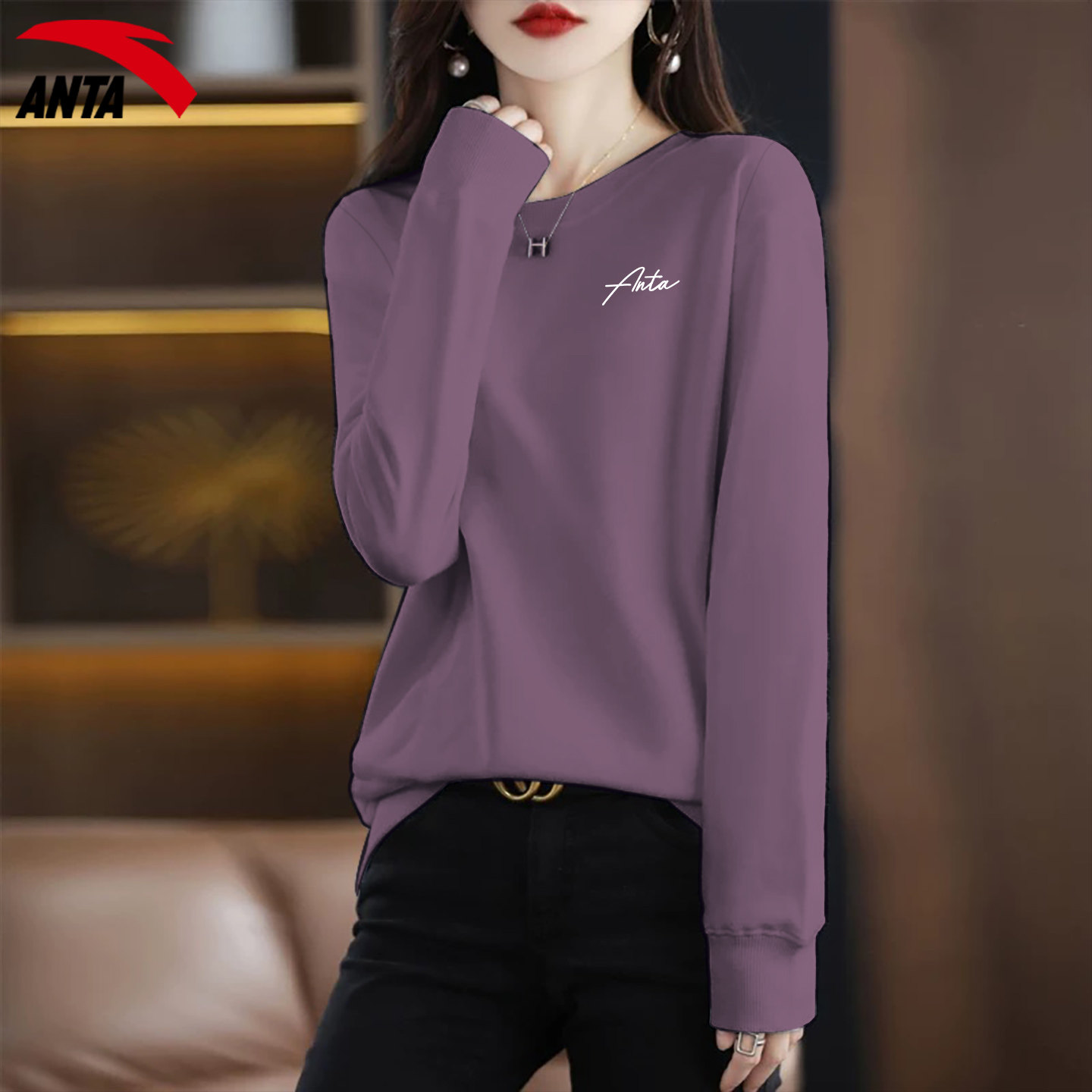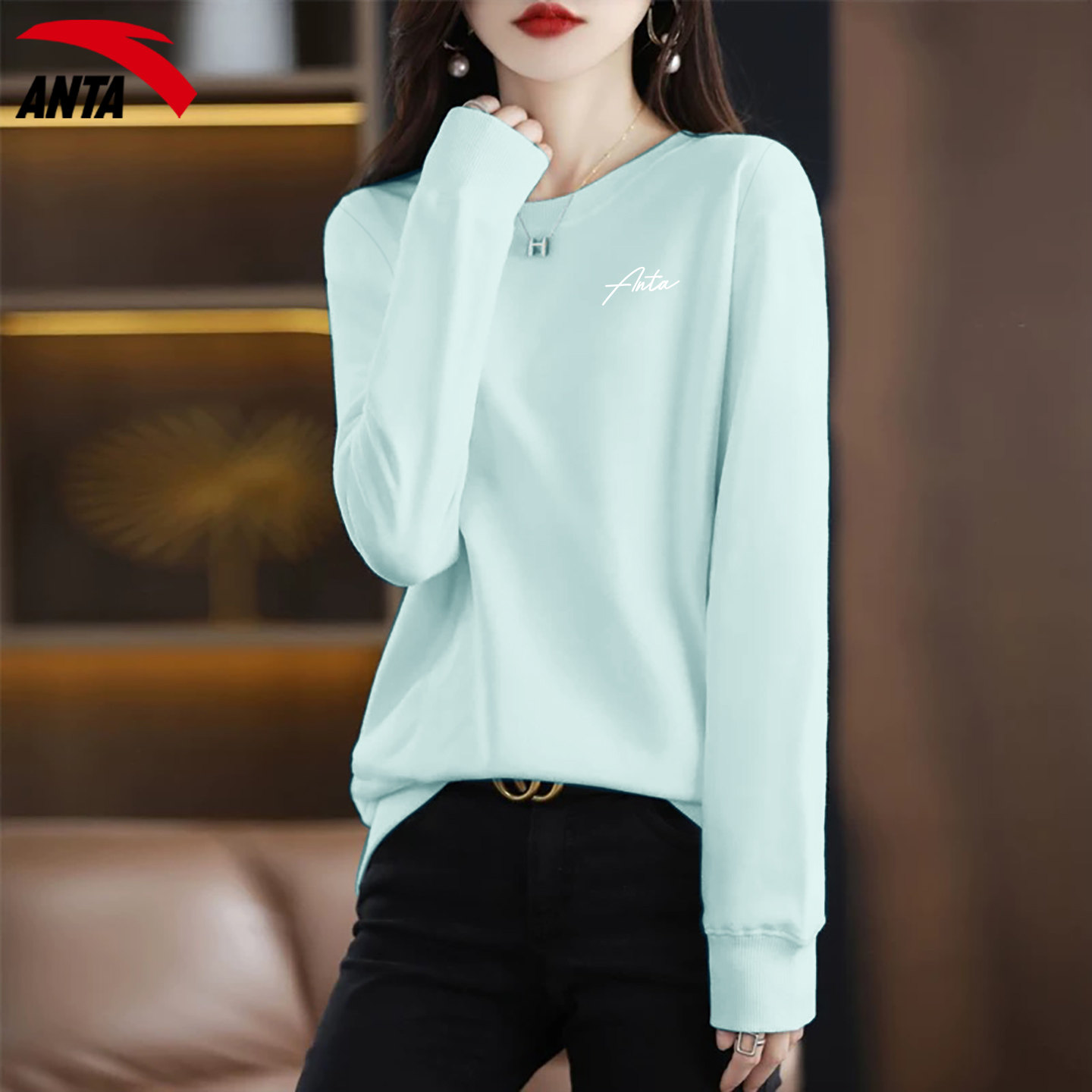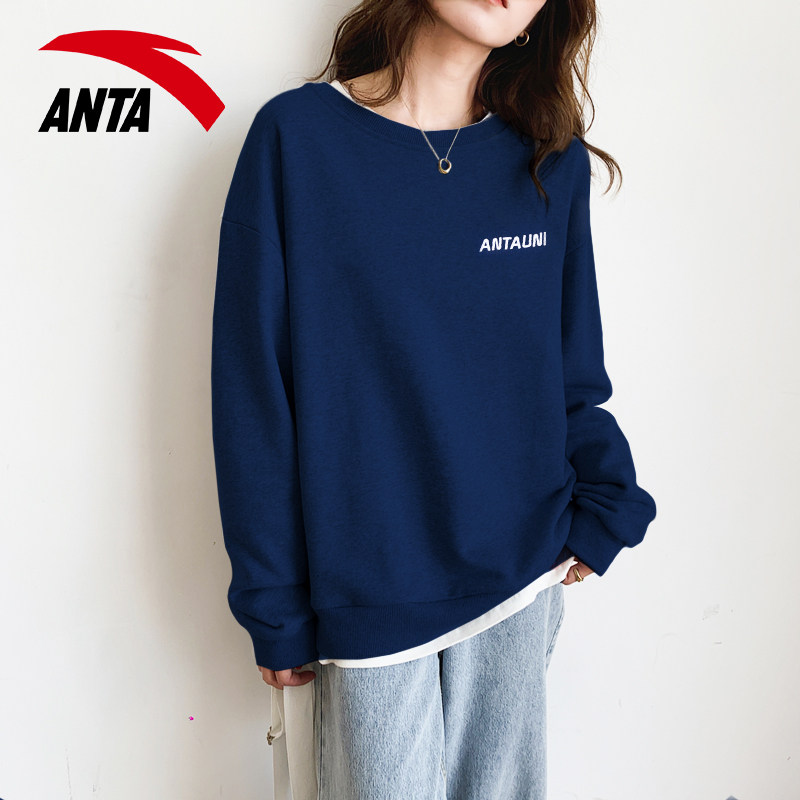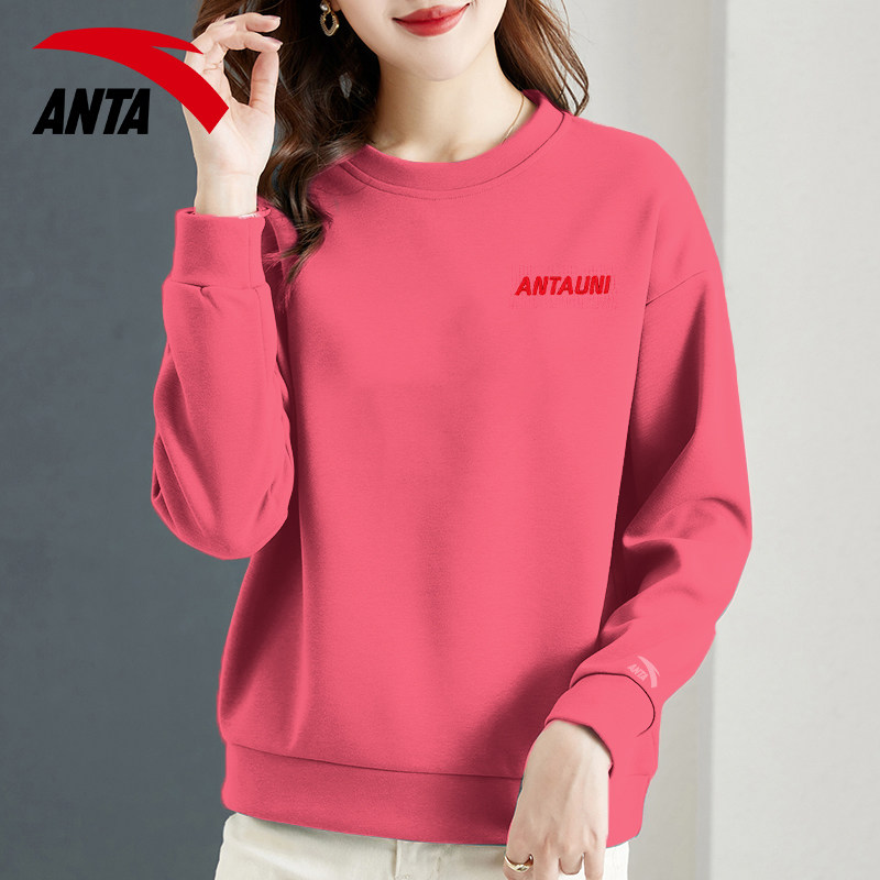 安踏卫衣女士圆领休闲宽松时尚简约纯色2026春季新款正品运动服女