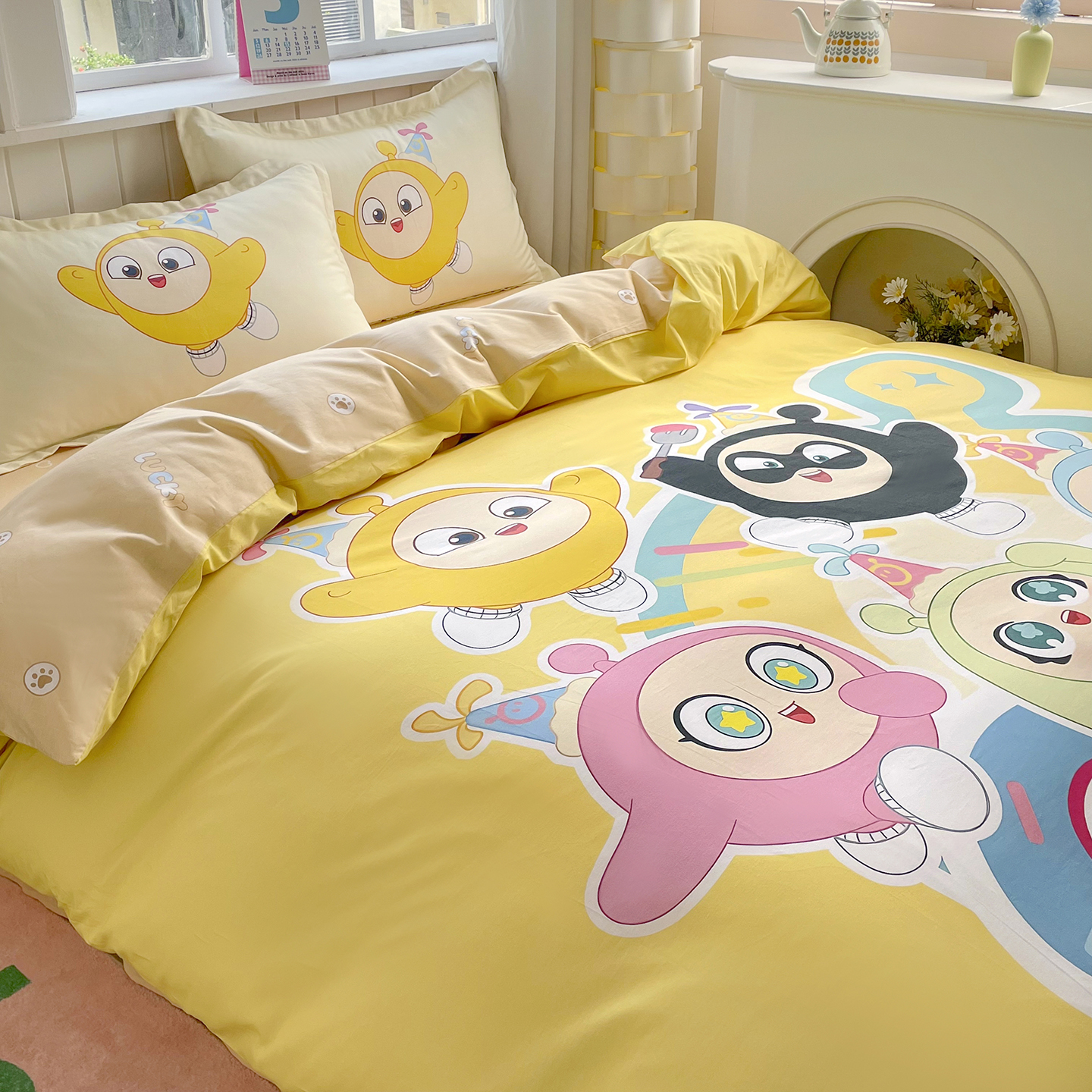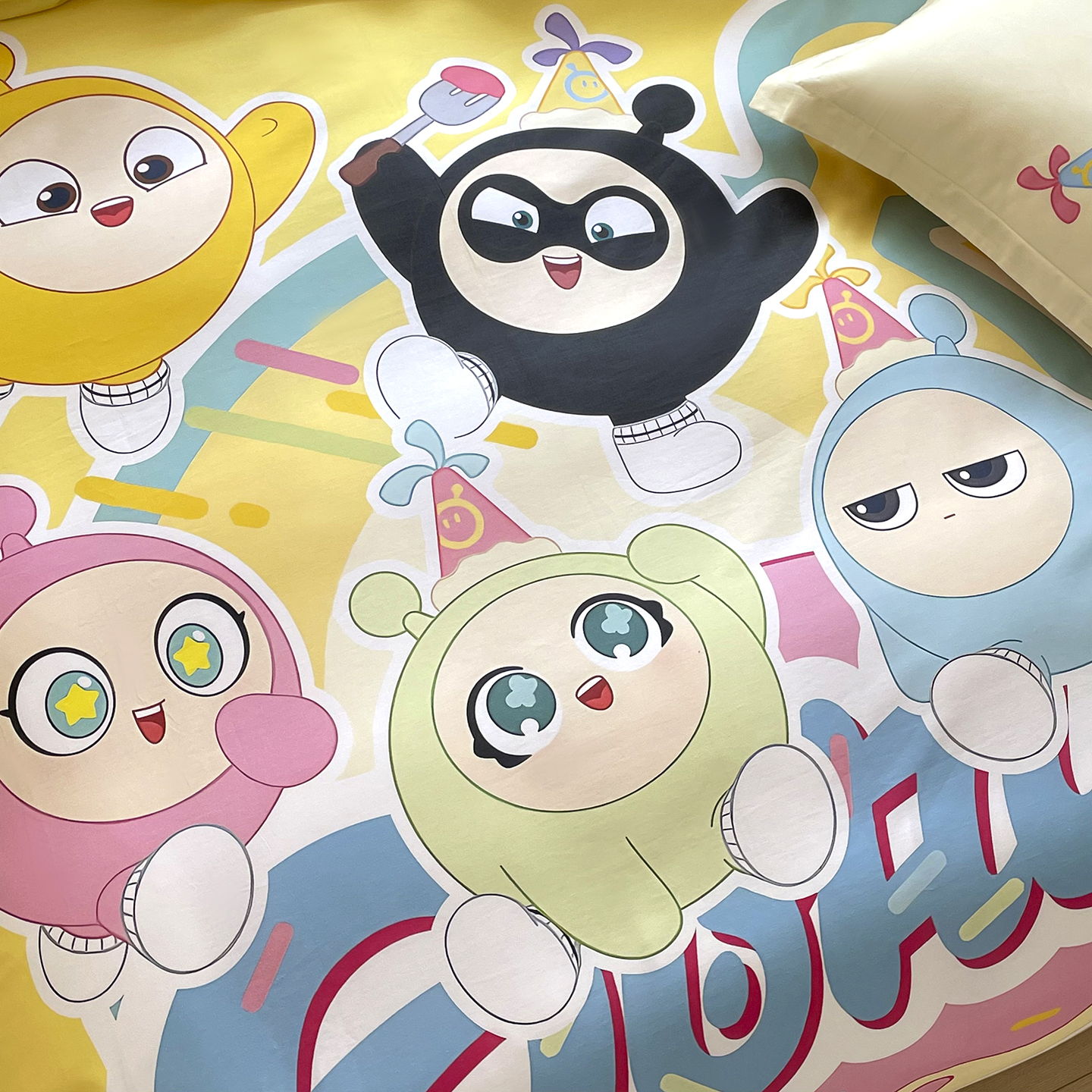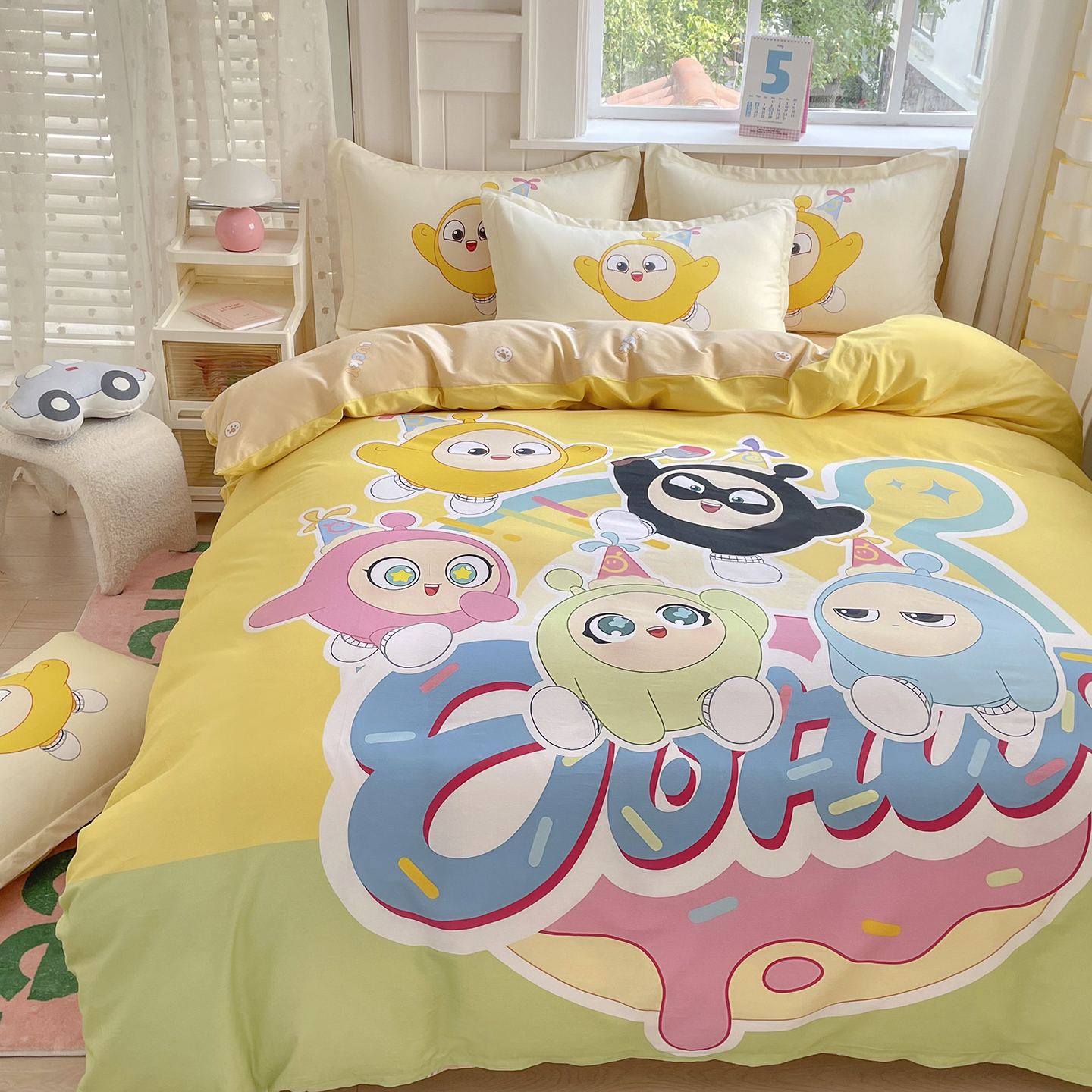 蛋仔卡通全棉卡通床上四件套纯棉100儿童可爱床笠家用宿舍三件套